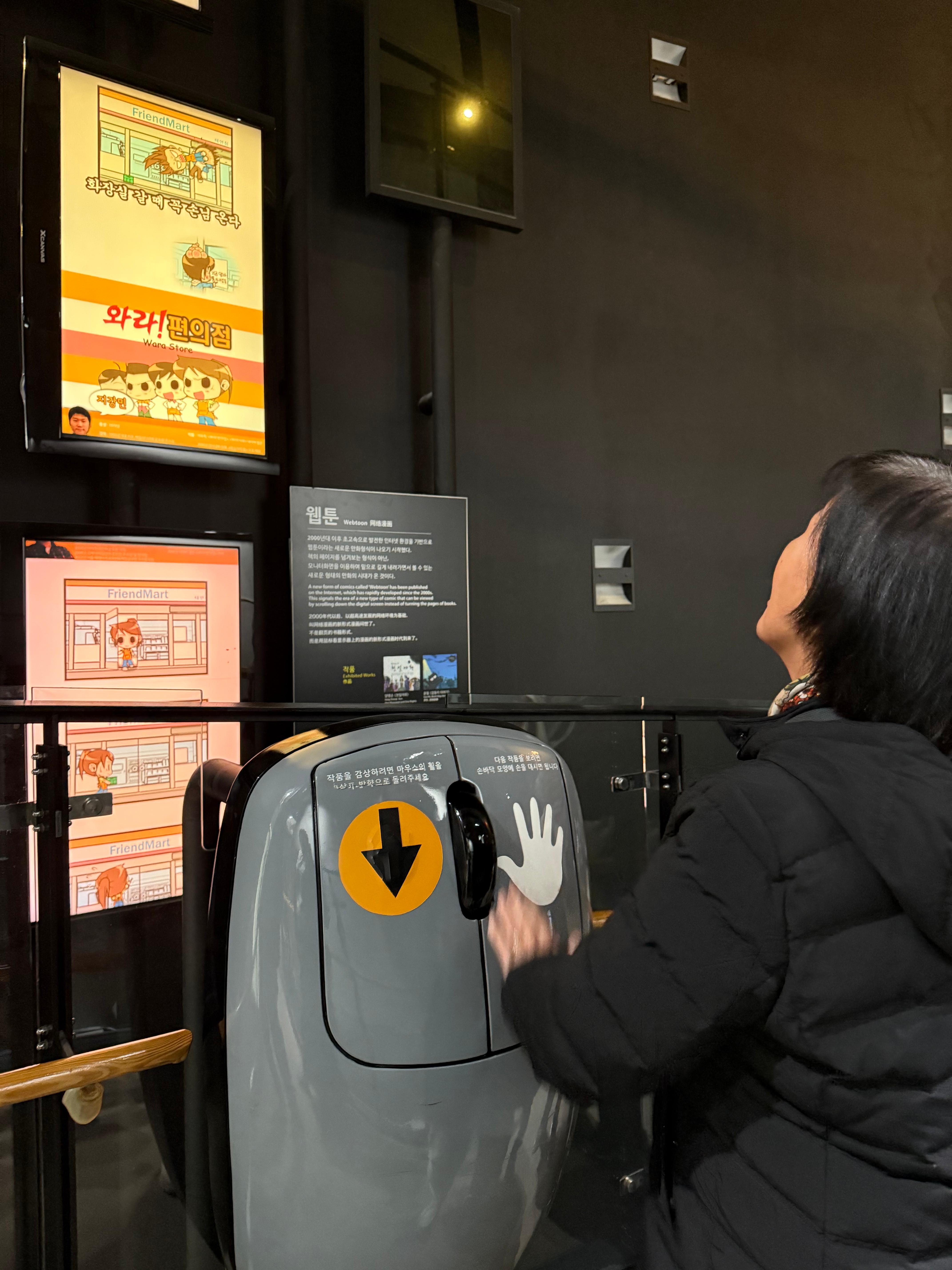 웹툰의 역사, 만화가 드라마나 영화로 상영되는 것에 대한 소개, '이태원 클라쓰' 만화가 실제로 드라마로 방영되었던 것에 대한 특별 전시관도 있었습니다.
