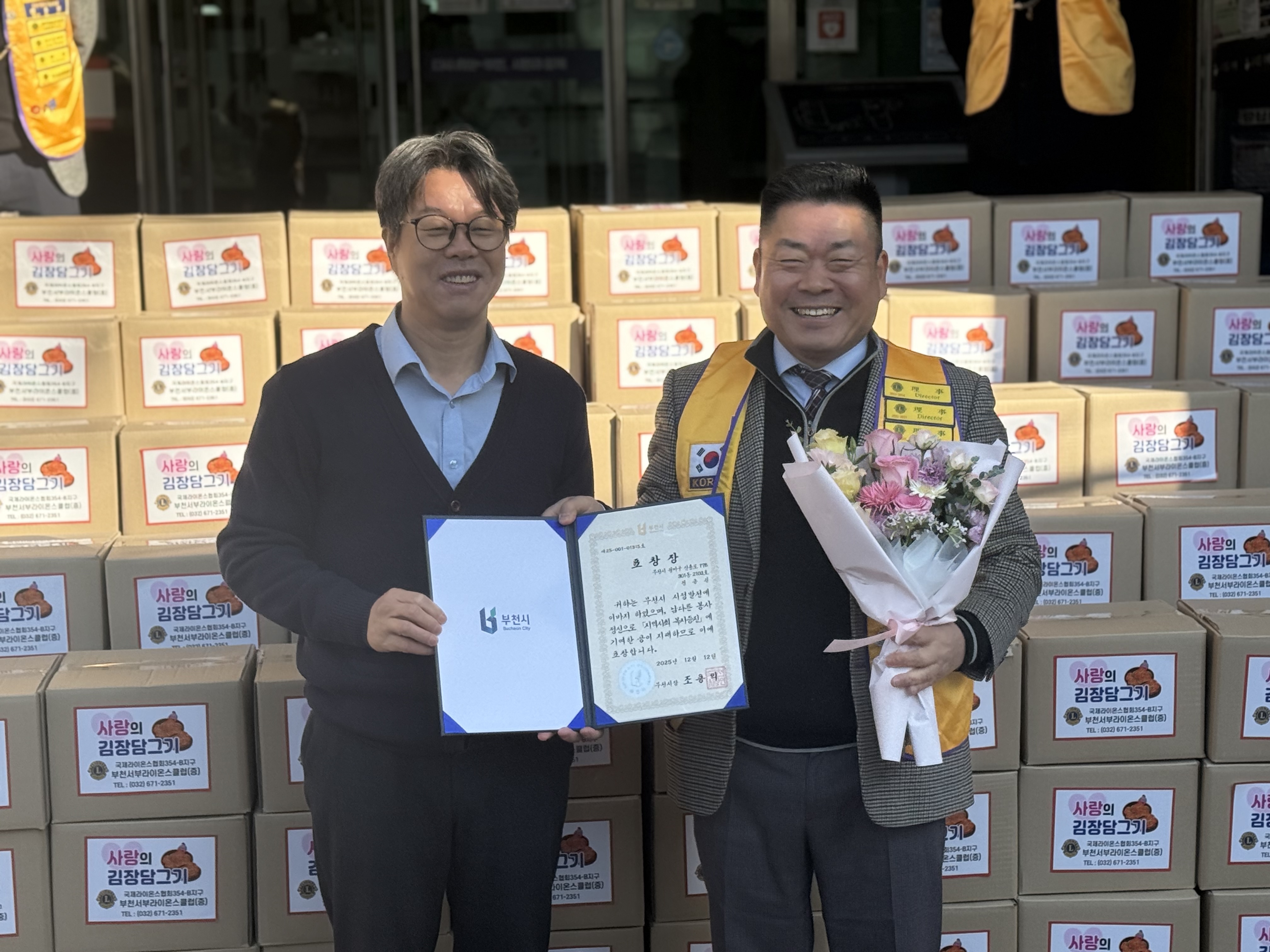 감사의 마음을 담아, 이날 지역사회 복지증진 유공자 표창으로 부천시장상을 원용길 회장에게