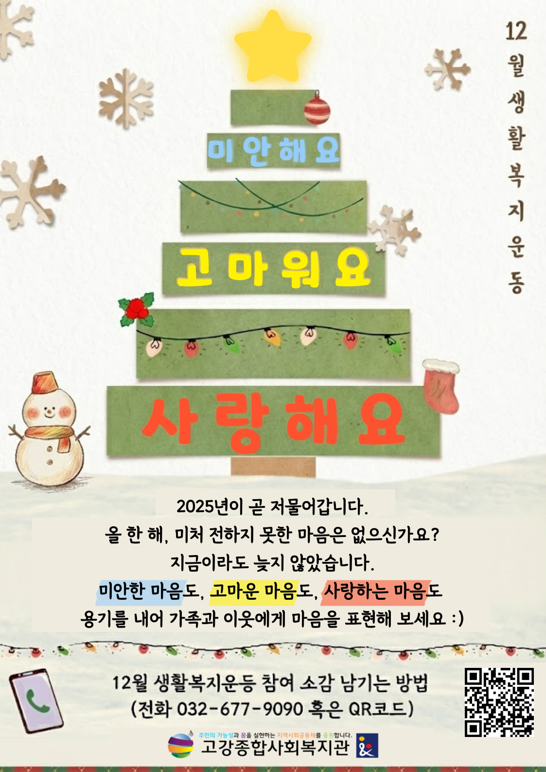 고강종합사회복지관이 여러분의 따뜻한 연말을 응원합니다.