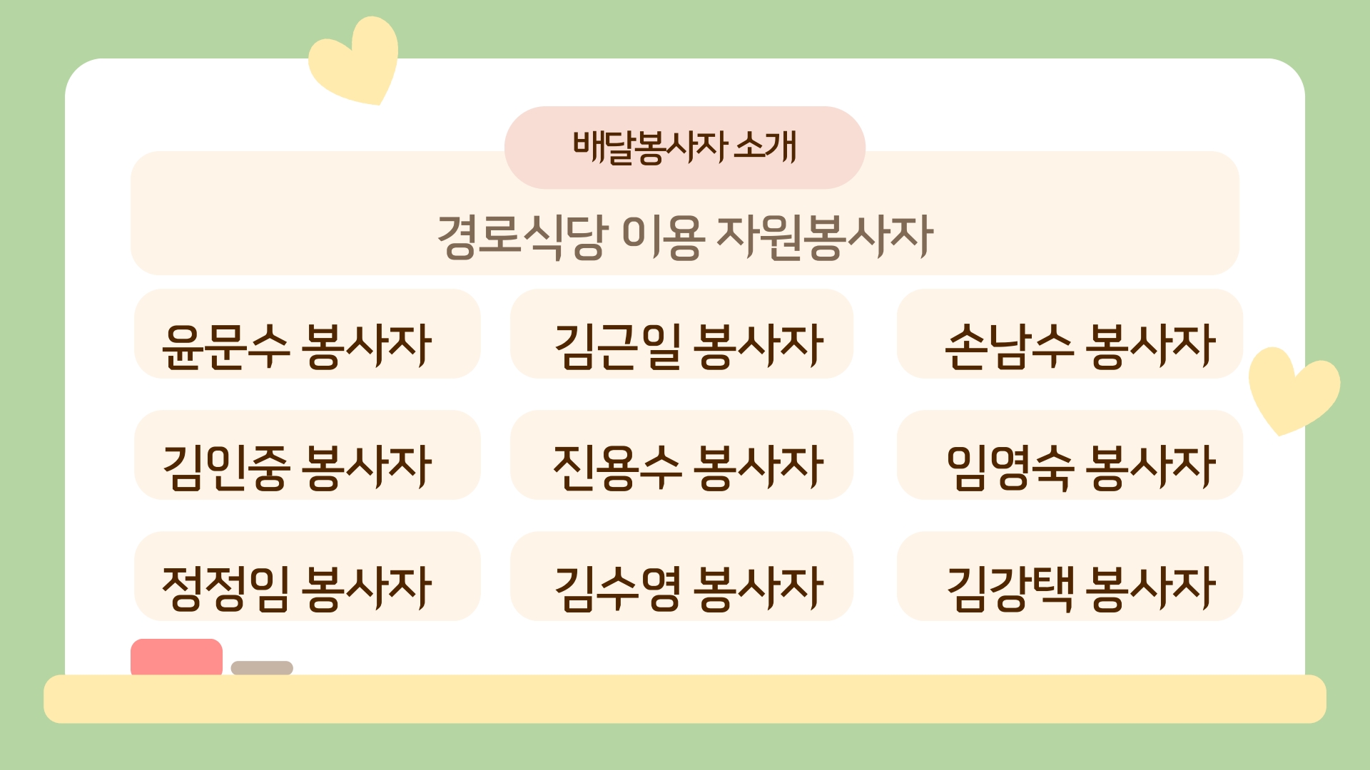 그 결과! 총 9명의 봉사자분들이 모이게 되었습니다.