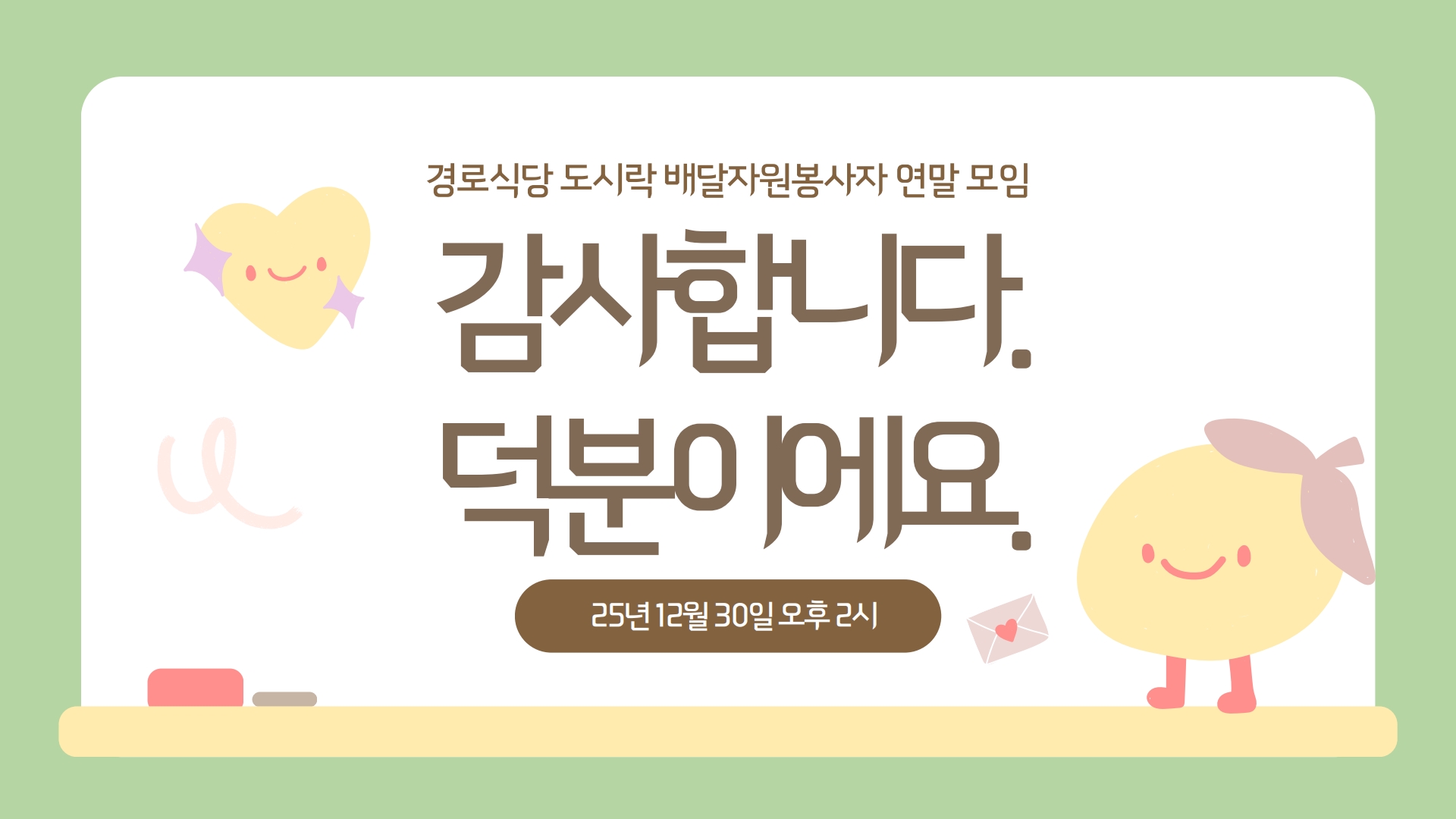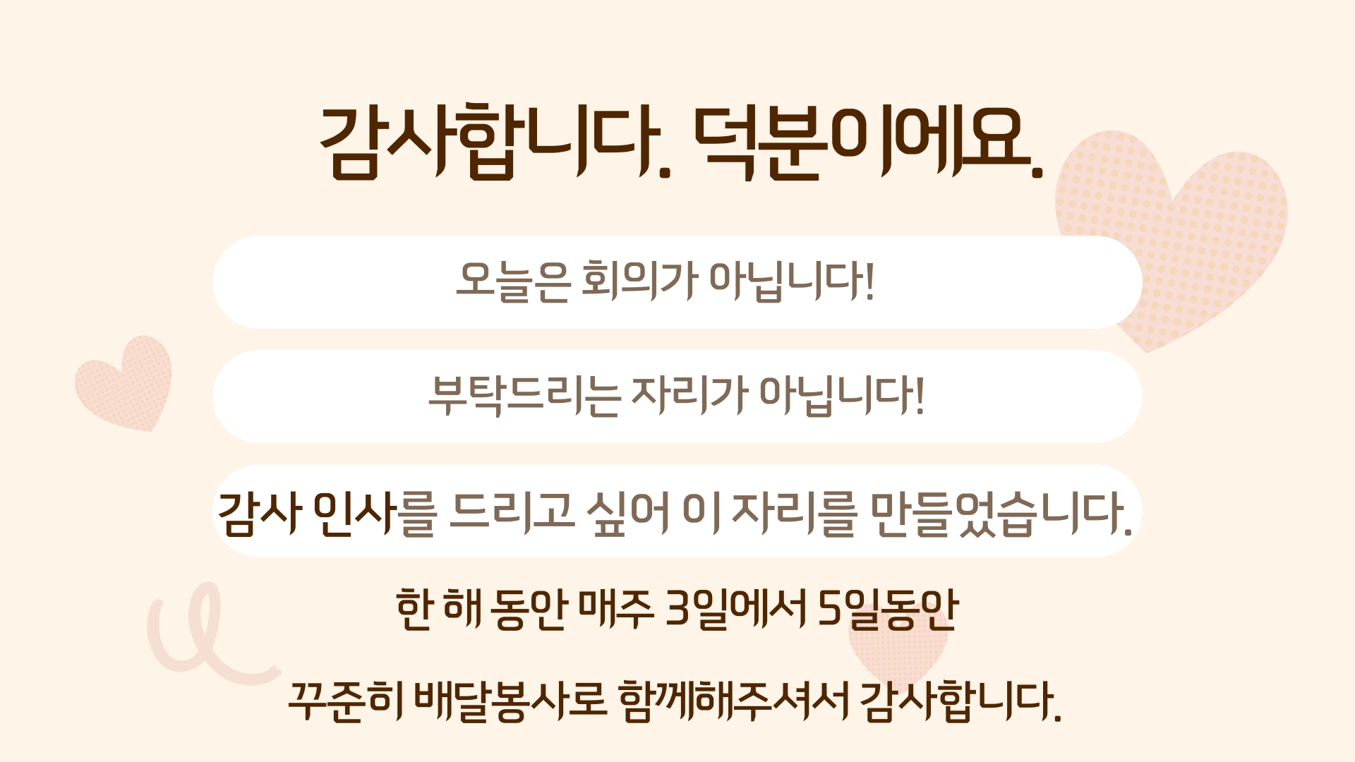 그리하여 '감사합니다. 덕분이에요'라는 이름으로 연말을 맞아 감사의 마음을 전하고자 이번 모임을 준비하게 되었습니다.