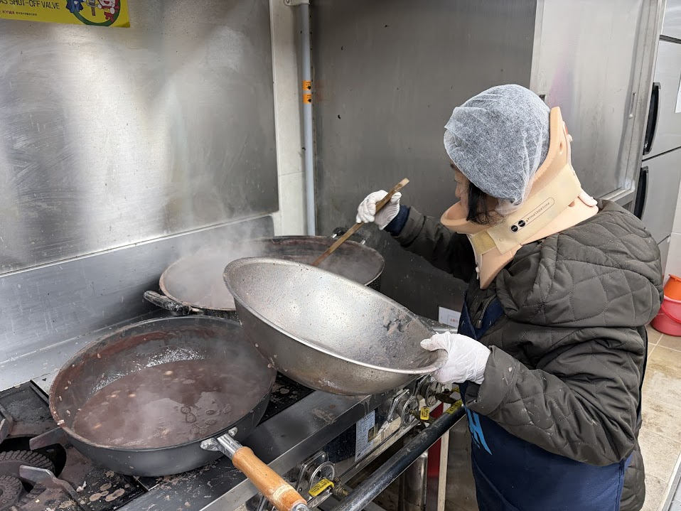 오후 내내 이어진 정성 덕분에 공유주방은 어느새 진하고 구수한 팥죽 향기로 가득 찼습니다.