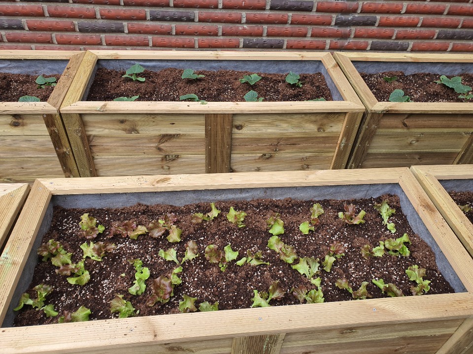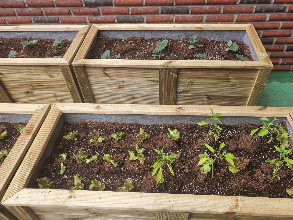 어느 덧, 열개의 텃밭상자안에는 여러 모종들이 심어졌습니다.