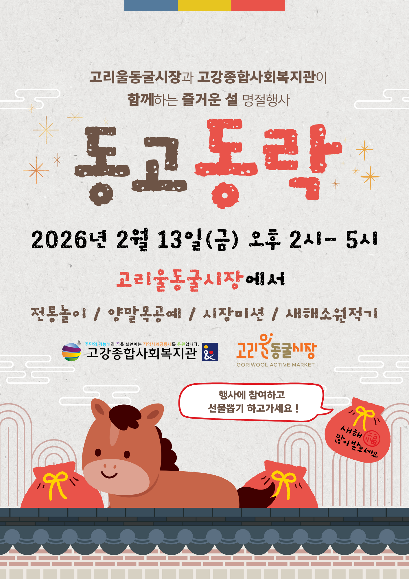 고리울동굴시장과 고강종합사회복지관이 함께하는 즐거운 설 명절행사 [동고동락]에 놀러오세요.