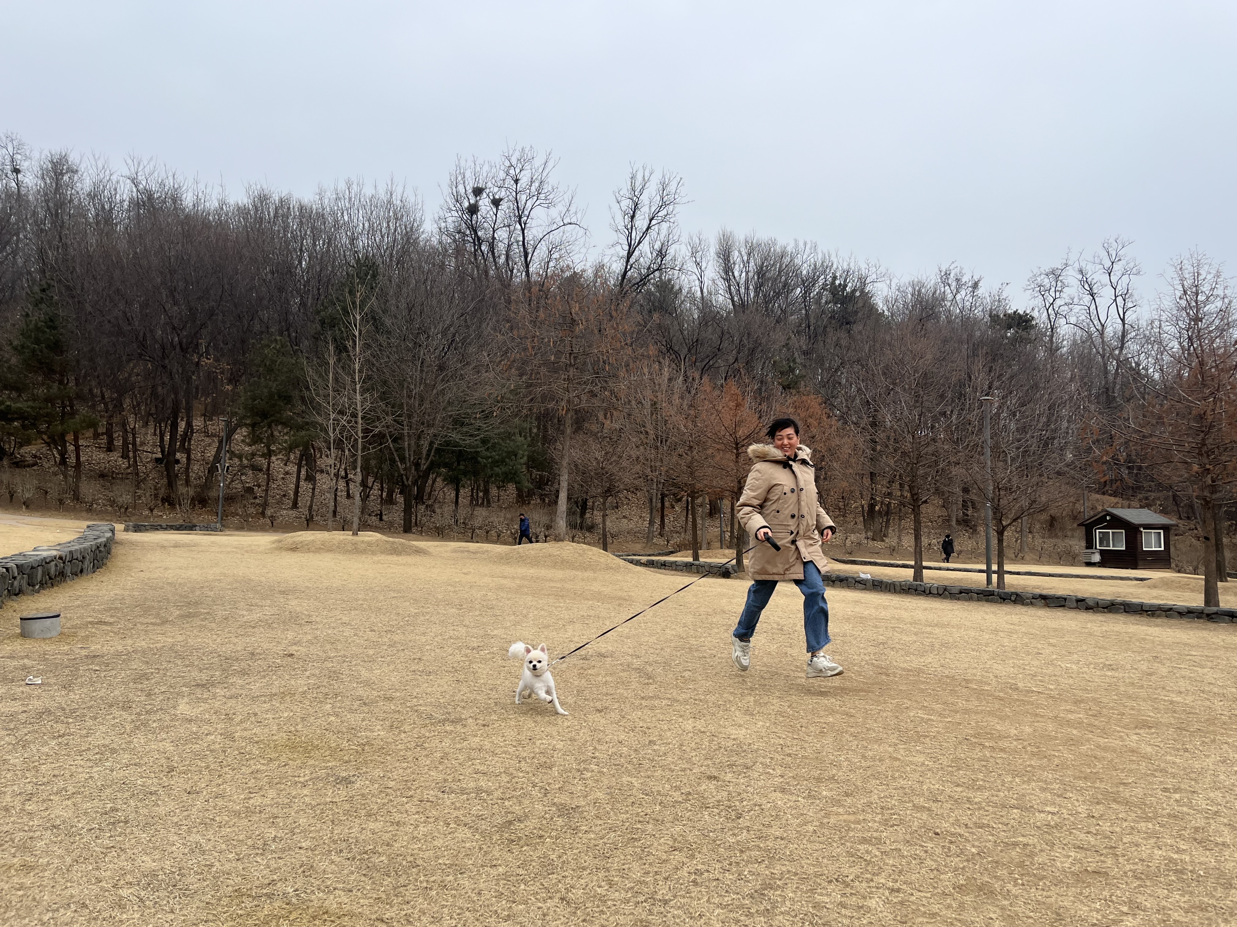 설이의 앙증맞은 보폭에 맞춰 나란히 걷는 모습은 서서울호수공원에서 단연 최고의 인기였답니다.