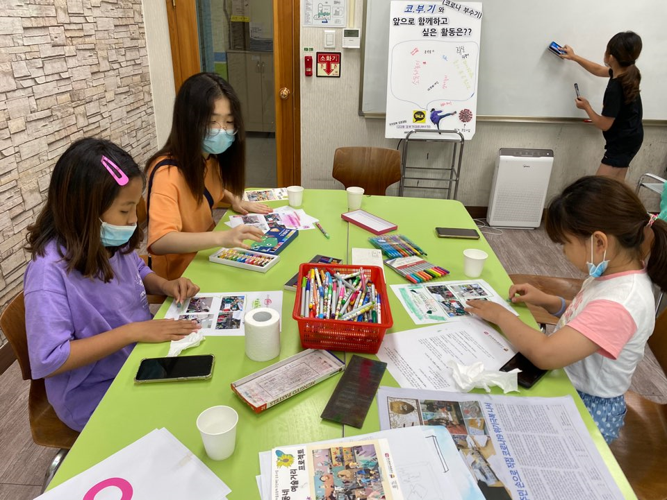 부모님께 코부기 소개하기 리플렛 만드는 작업을 하는동안은 밖에서 신나게 놀기 보단 함께 둘러 앉아 이야기 나누는 시간이 많았어요.