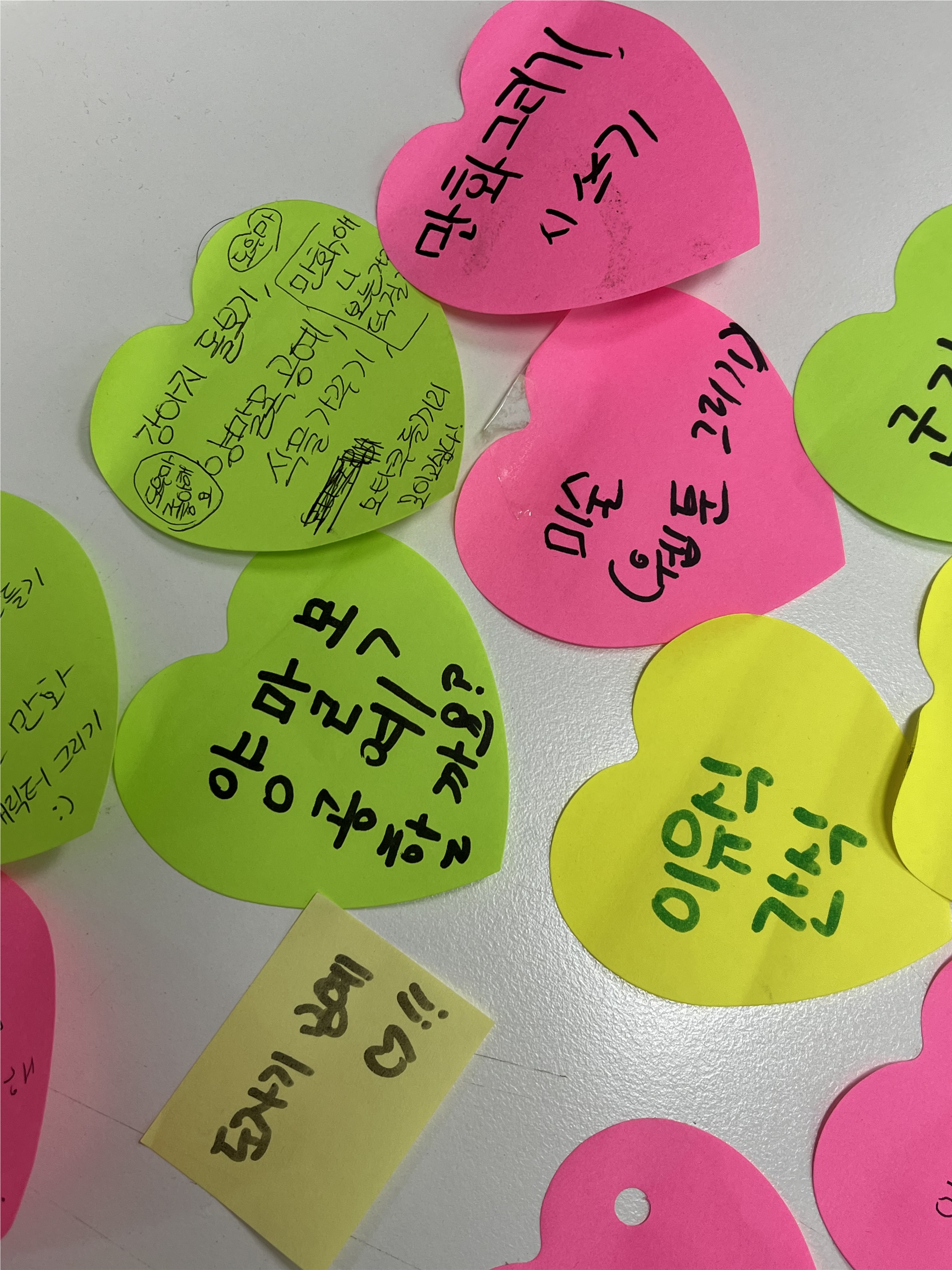 텅 빈 우드락 한개를 복지관 1층 로비에 놓으니 하루 이틀... 알록달록한 포스트잇들이 보이기 시작합니다.