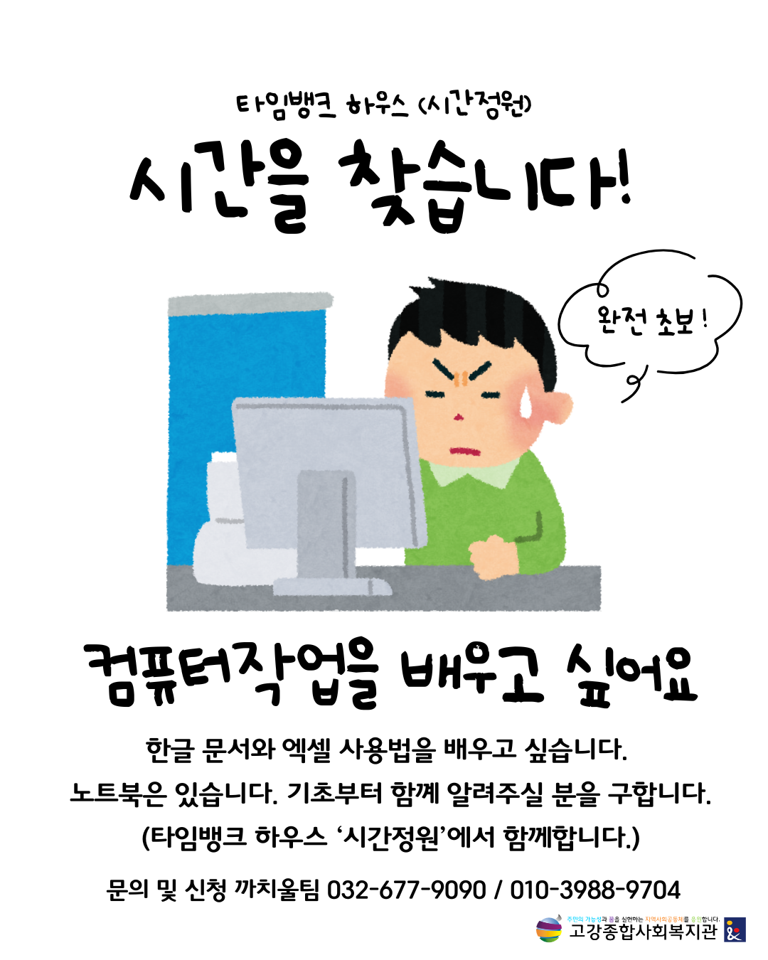 한글 문서와 엑셀 사용법을 배우고 싶은 주민입니다.