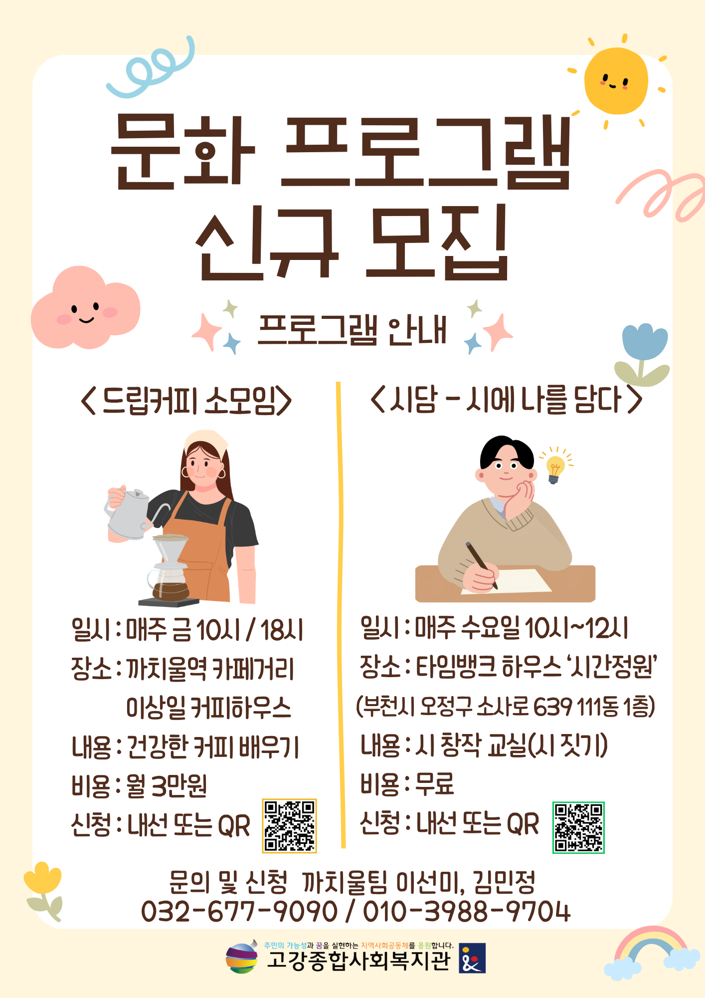 안녕하세요! 이상일커피하우스x고강종합사회복지관 <드립커피 소모임>을 진행합니다. 2026년 새해를 맞아, 내가 마시고 있는 커피 좀 더 건강하게 즐겨보는 것 어떠세요? 3명 모집 시 바로 개강합