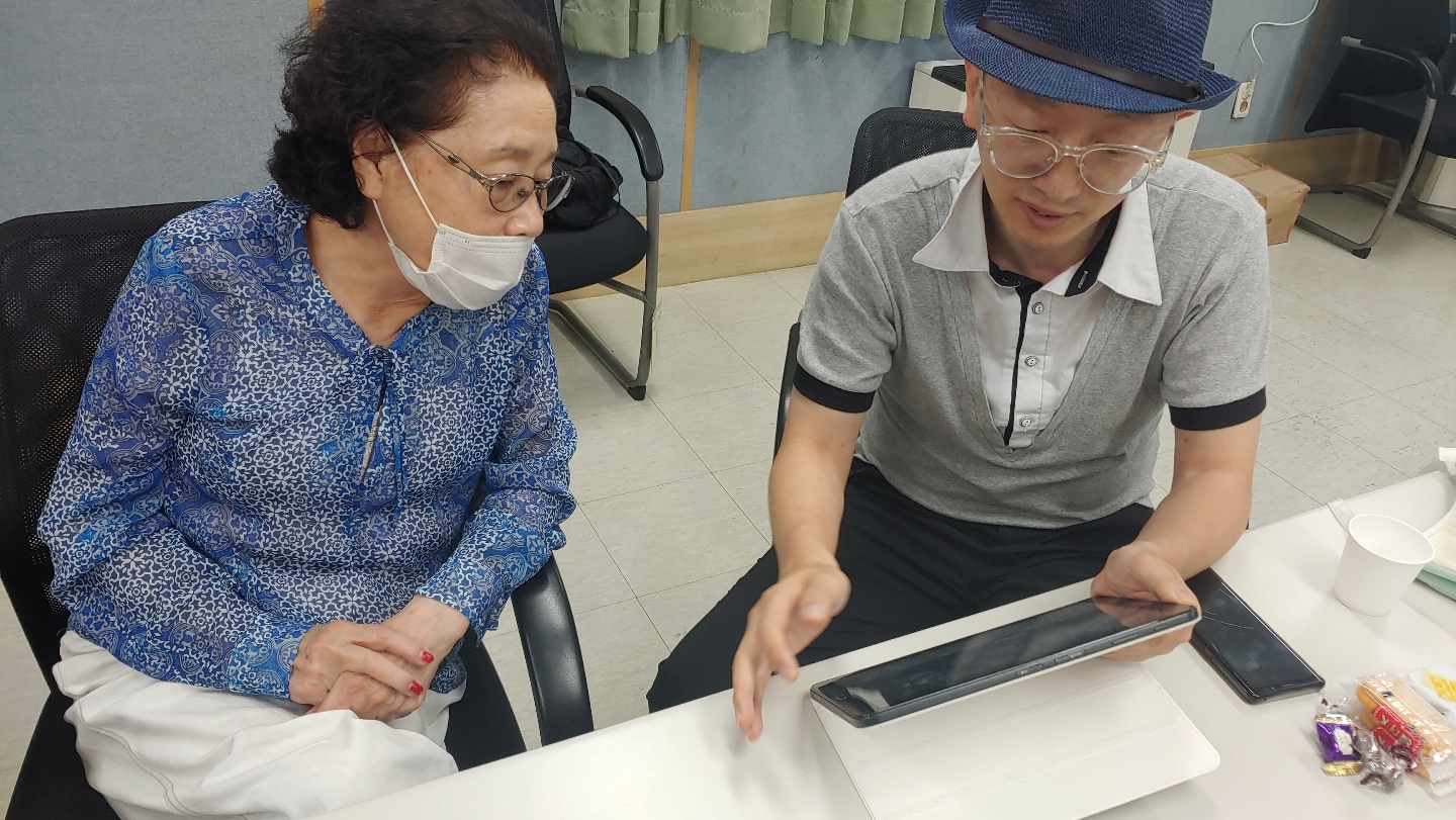 VR이 무엇인지, 코딩이 무엇인지 하던 어르신들이 자원봉사자와 함께 장면을 하나하나 완성해나가니 신통방통하고 재미납니다. 열심히 옛날 이야기를 하며 추억을 회상하고, 그때의 좋았던 감정을 되살리며 나를 만나는 시간을 가졌습니다.