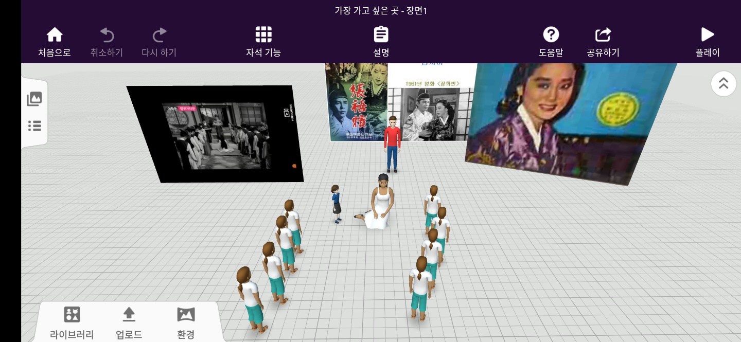 무엇으로 만드는 걸까요? 촬영 도구를 가지고 직접 촬영을 하실 수도 있지만, 우리는 추억 여행을 주제로 삼았기 때문에 직접 촬영보다는 코스페이시스 에듀 애플리케이션을 활용해 제작하는 것으로 했습니다.