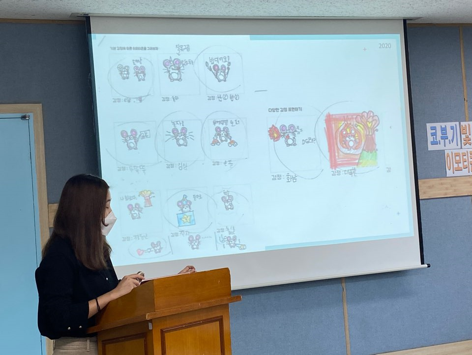작가님의 설명이 들어가니 아이들이 어떤 생각으로 이모티콘을 만들었는지 더욱 풍부하게 공유될 수 있었습니다.