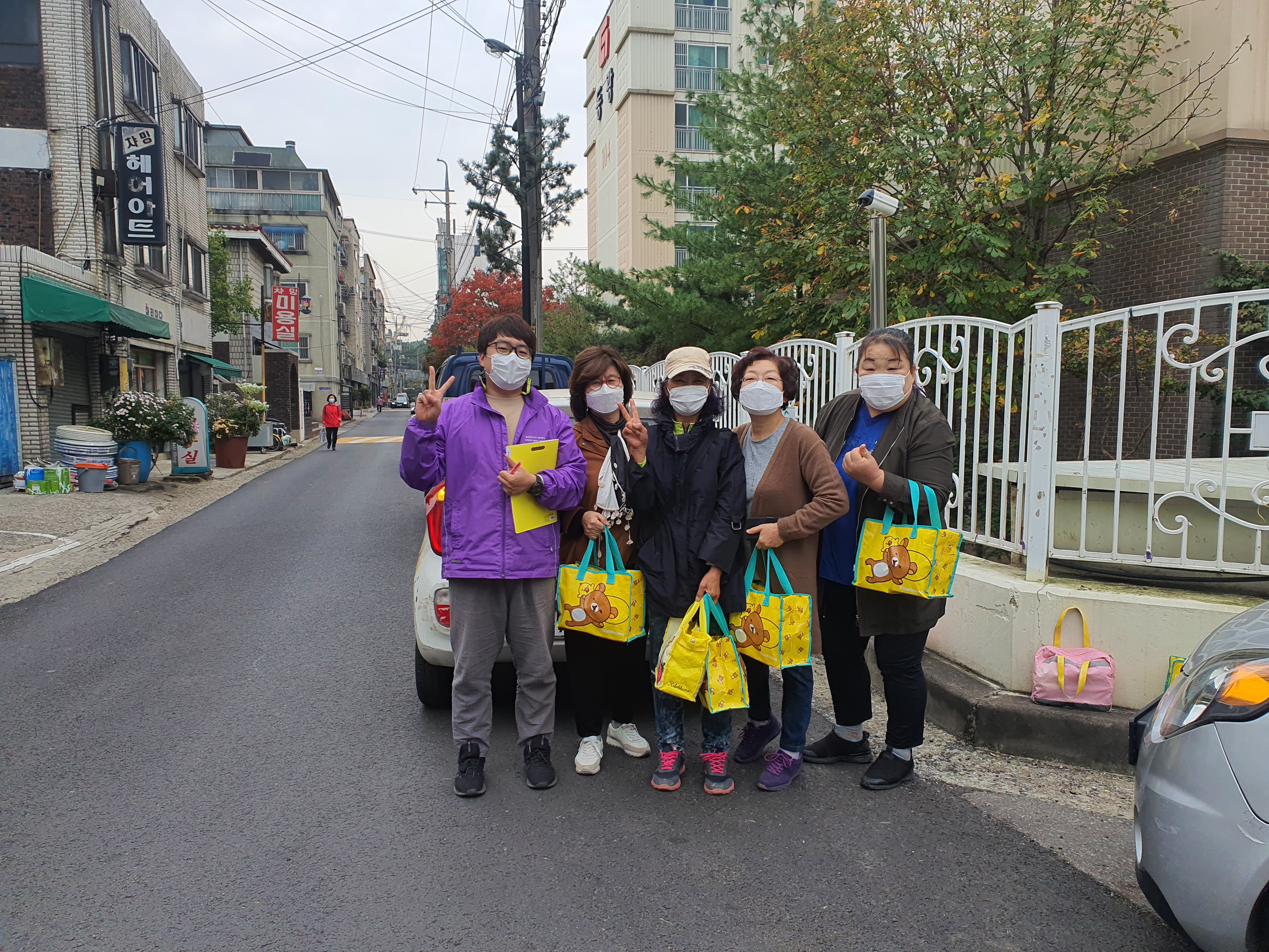 활동가들은 사회복지사가 건네 준 밑반찬 가방을 들고 첫 방문을 시작하였습니다.