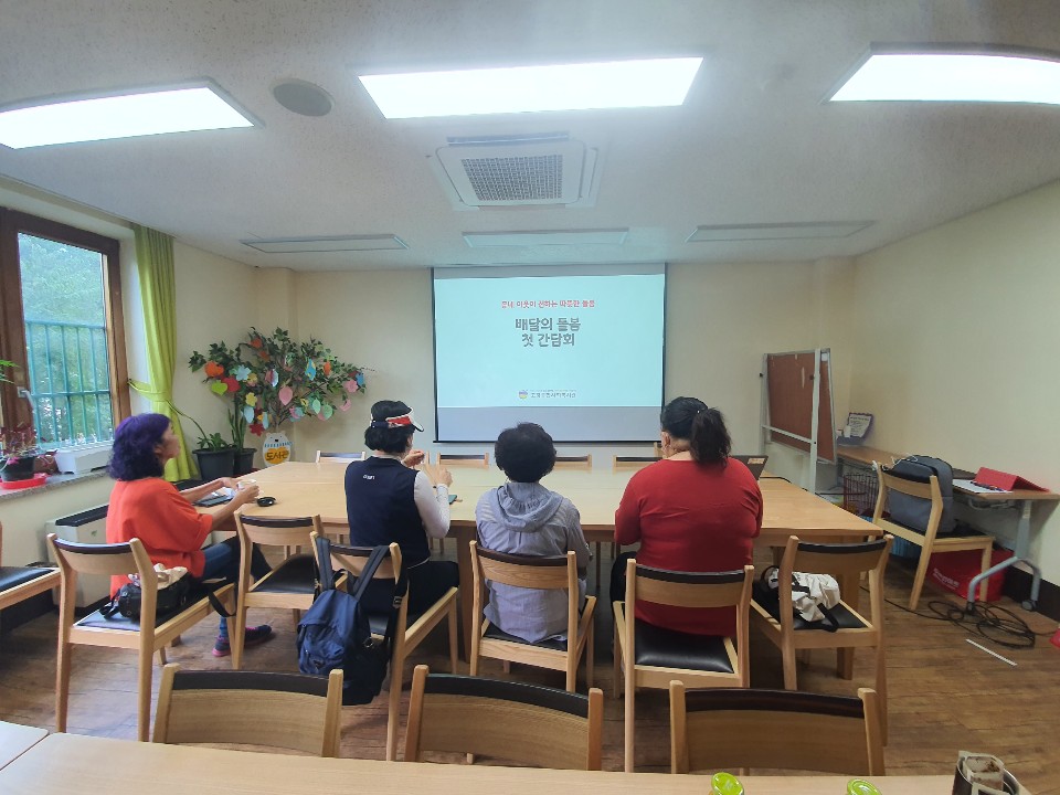 지난 9월 24일 첫 간담회를 통해 밑반찬서비스 사업에 대한 안내, 배달의 돌봄 사업 취지와 활동 목적을 안내하였고, 참여 주민들과 앞으로 활동에 대한 계획을 세워보는 시간을 가졌습니다.