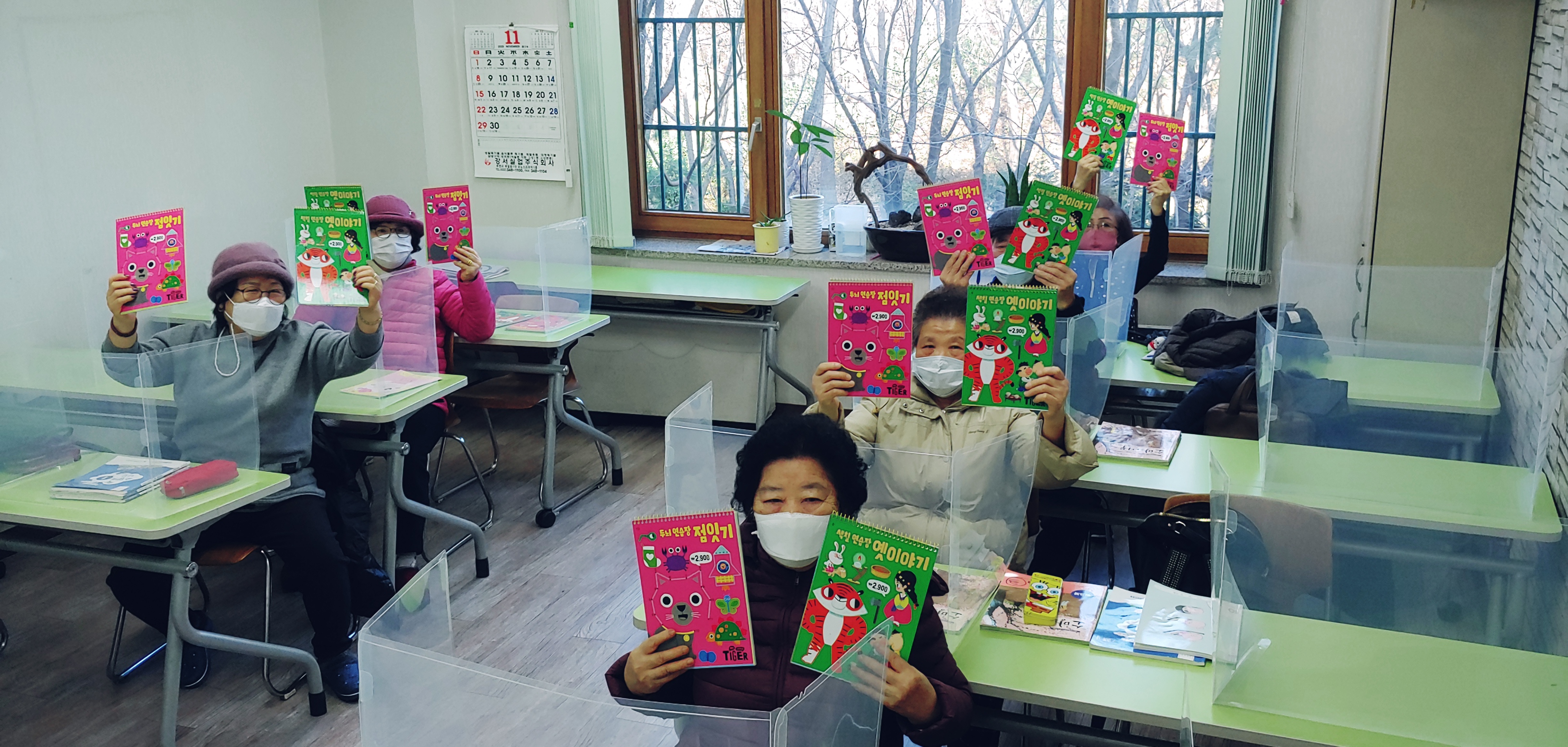 마침 문해교사 양성과정에 참여한 분들이 실습에 이어 봉사까지 이어와주셔서 책을 보며 두런두런 이야기도 나눴습니다. 길고 긴 겨울방학이지만 받으신 색칠하기와 점잇기 책 가지고 열심히 공부하시겠다고 하십니다. 공부하시는지 숙제는 하고 계시는지 깜짝 방문해야겠습니다.