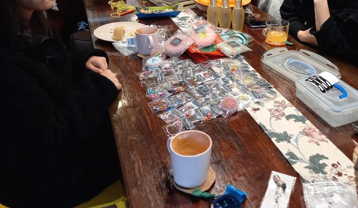 어머니들은 바자회 수익금으로 좋은일에 쓰인다는 생각에 대해 많은 의미부여를 하고 계셨습니다. 사장님도 카페 한켠에 앉아 바자회에 낼 수세미 뜨개질을 하셨습니다. 어느 순간 많은 비즈 팔찌, 반지들을 볼 수 있었습니다.
