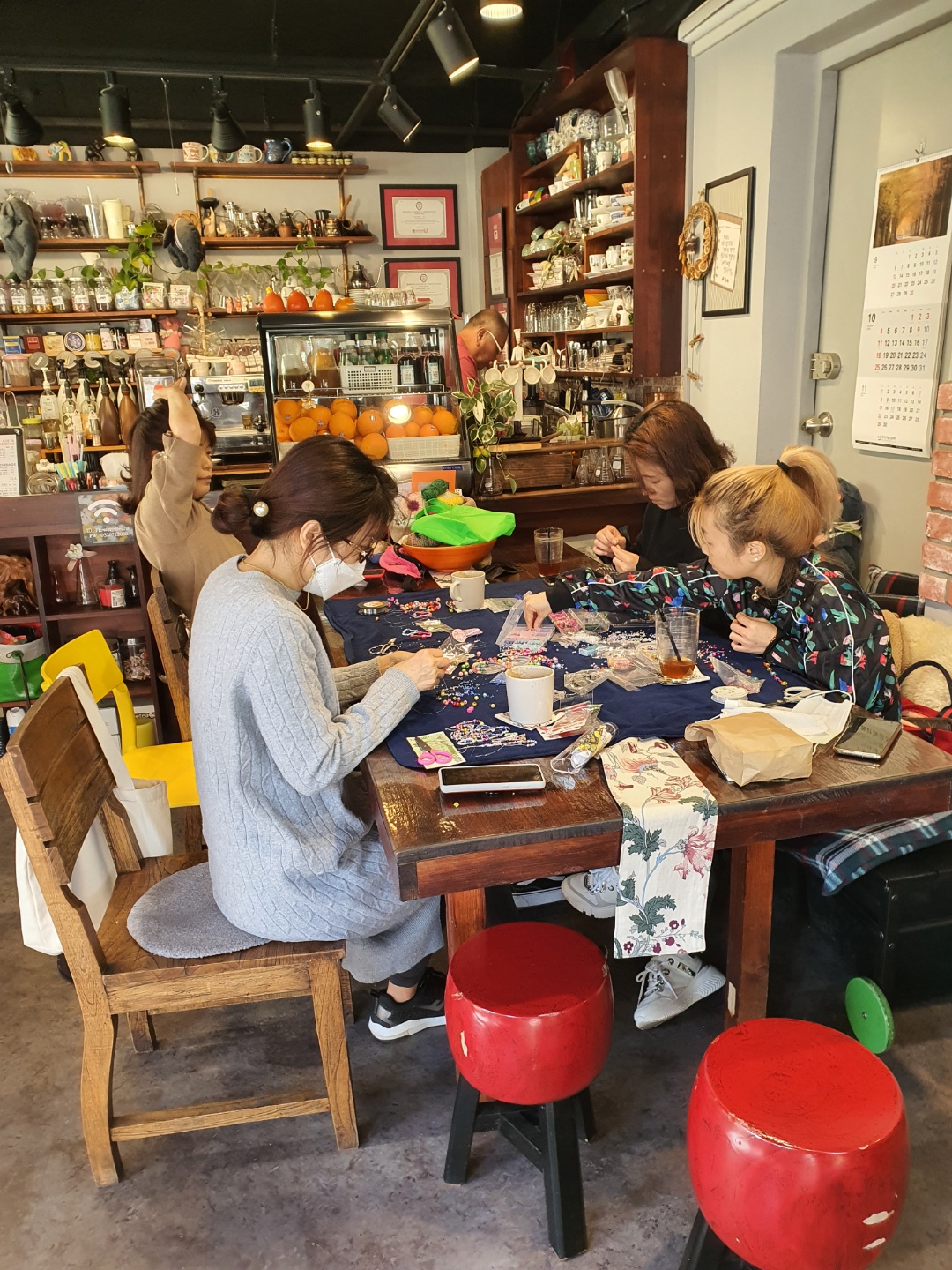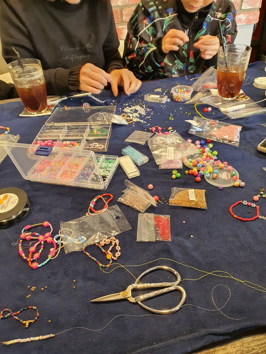 총 5회기 동안 카페 꽃앤콩에서 비즈공예를 하기 위해 만났습니다.