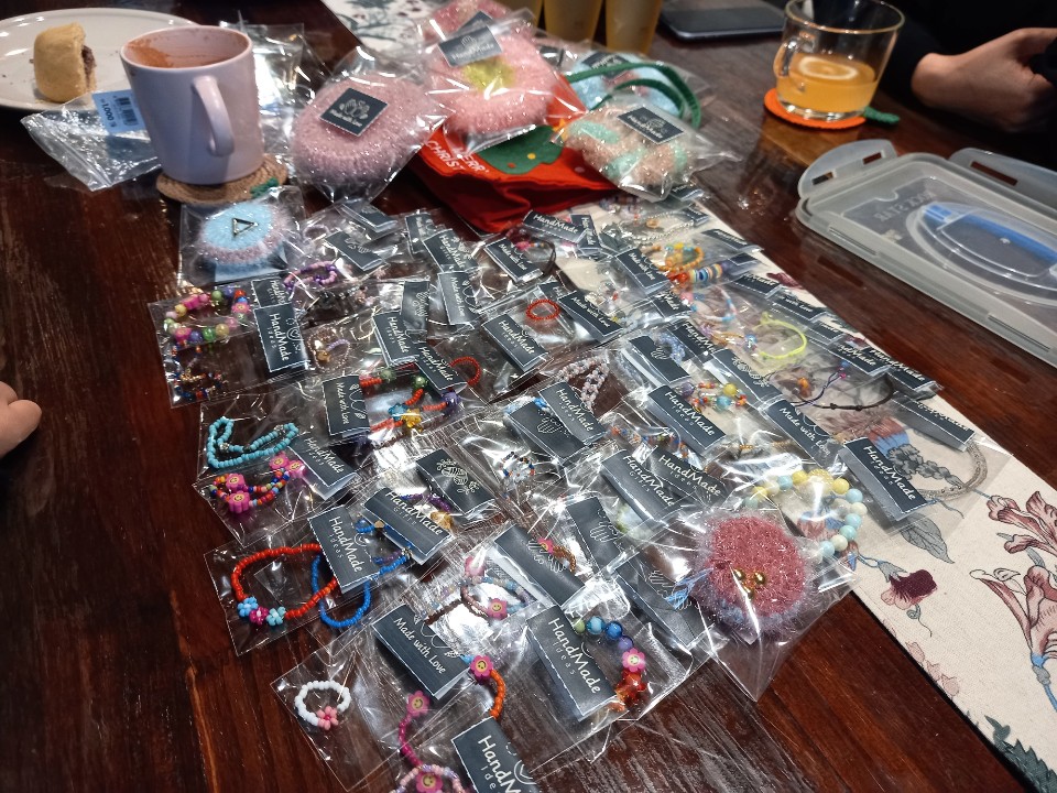 어머니들은 바자회 수익금으로 좋은일에 쓰인다는 생각에 대해 많은 의미부여를 하고 계셨습니다. 사장님도 카페 한켠에 앉아 바자회에 낼 수세미 뜨개질을 하셨습니다. 어느 순간 많은 비즈 팔찌, 반지들을 볼 수 있었습니다.