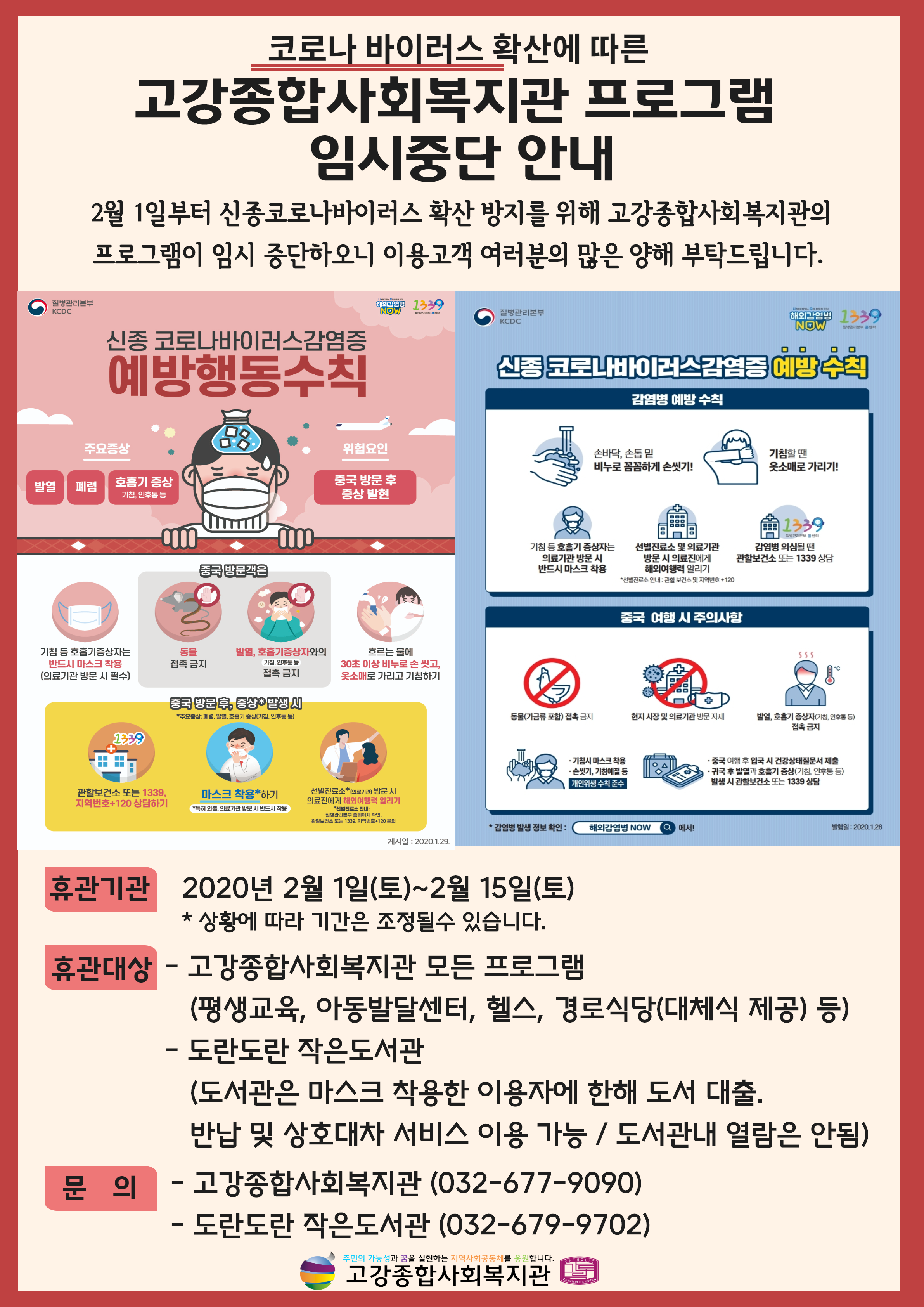 | 고강종합사회복지관 휴관 안내 (0) | 2020.02.22 |