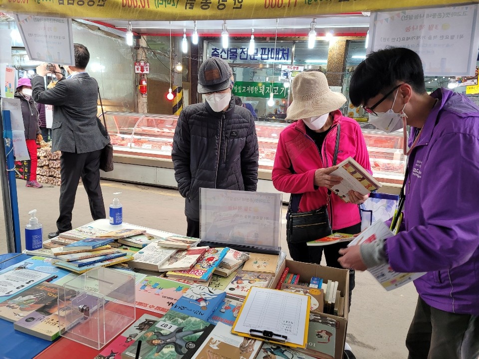 책을 나누며 이야기를 나누고, 복지관을 홍보하며 사람들을 만났습니다.