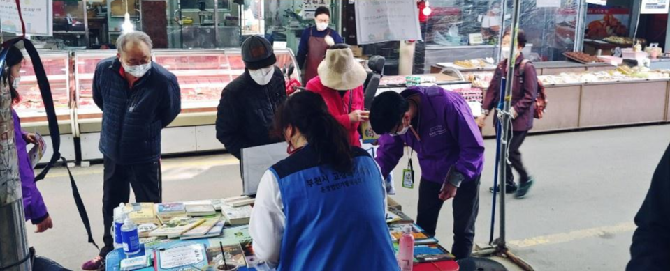 이 기회를 놓칠 순 없죠. 열심히 고강종합사회복지관을 알립니다. 복지관에 대해 알지 못했던 분들이 많네요. 홍보지를 건네며 간단히 설명을 드립니다.