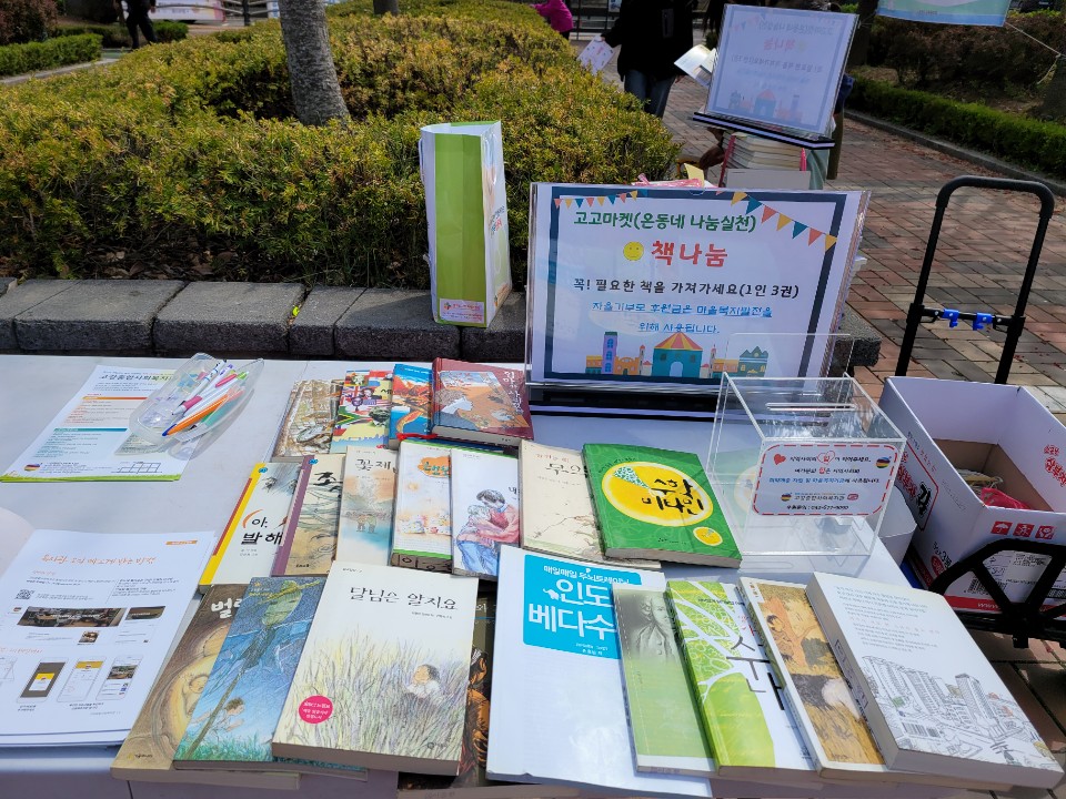 책을 매개로 주민들과 만나며 소소한 이야기를 나눌 수 있었고, 책에 관심이 많은 주민은 다음에도 나눔활동을 했으면 좋겠다는 의견을 주시기도 합니다. 그래서 다음부터는 조금씩 나눔할 수 있는 책들을 더 가지고 나올 계획입니다.
