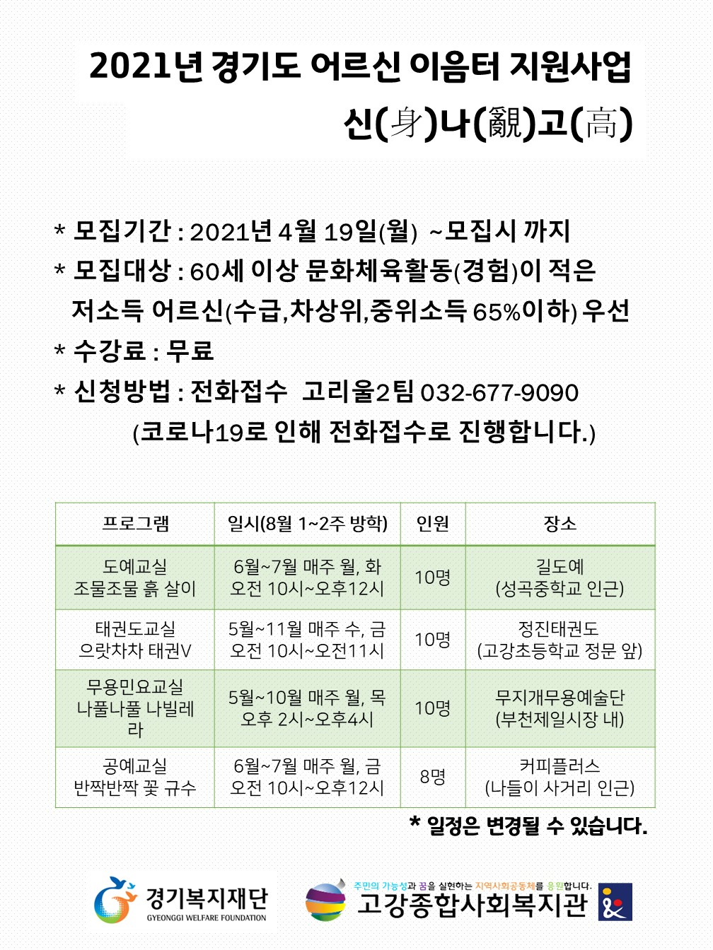 경기복지재단 어르신 문화체육 이음터 ‘신(身)나(覶)고(高)’