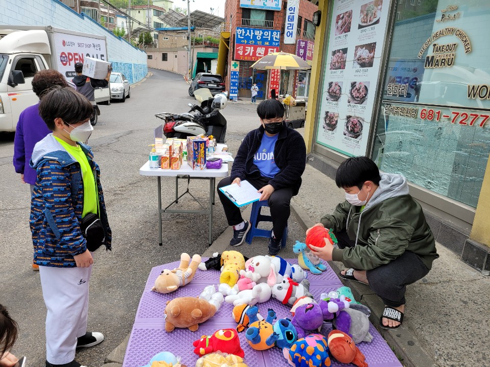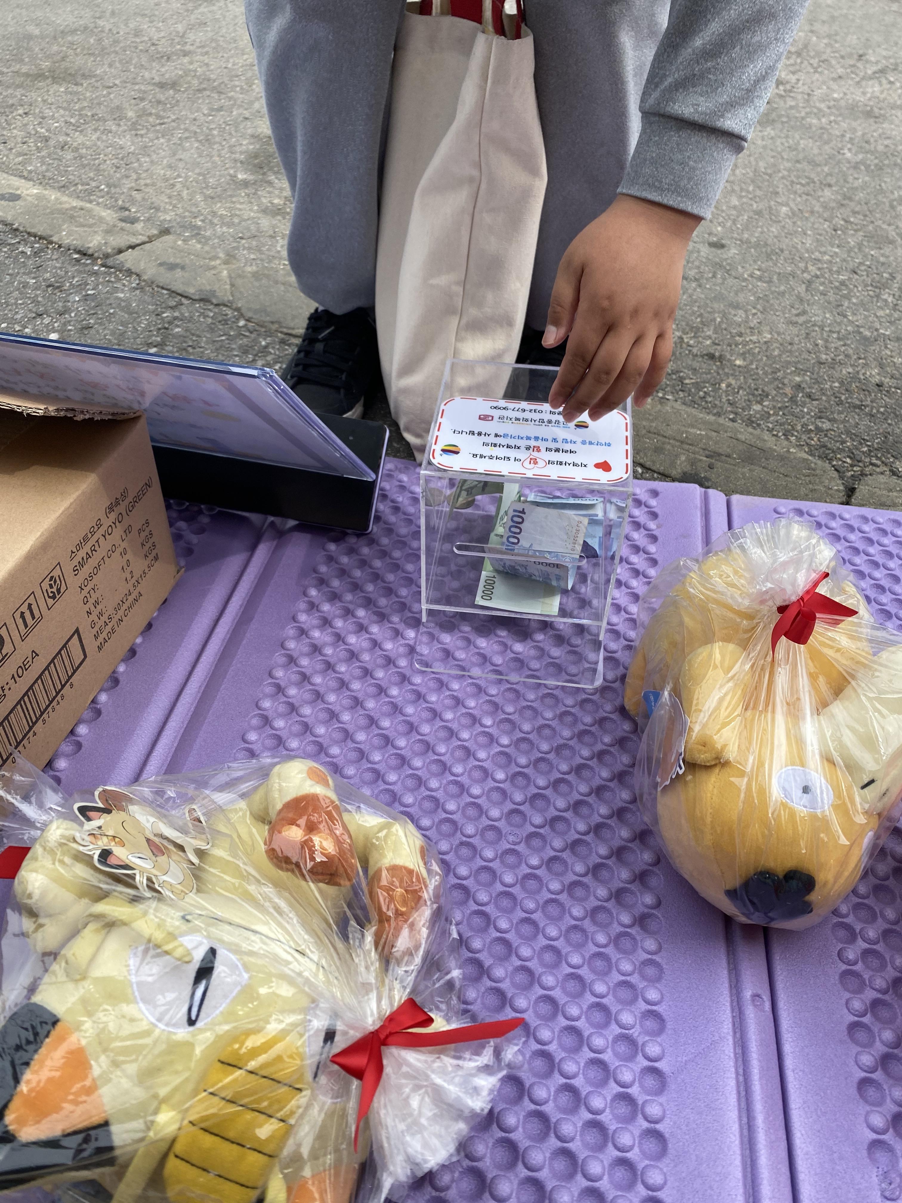 최연소 나눔 자도 만났습니다. 10살 남자 친구, 인형을 가져가고 1,000원을 기부하고 갔어요!