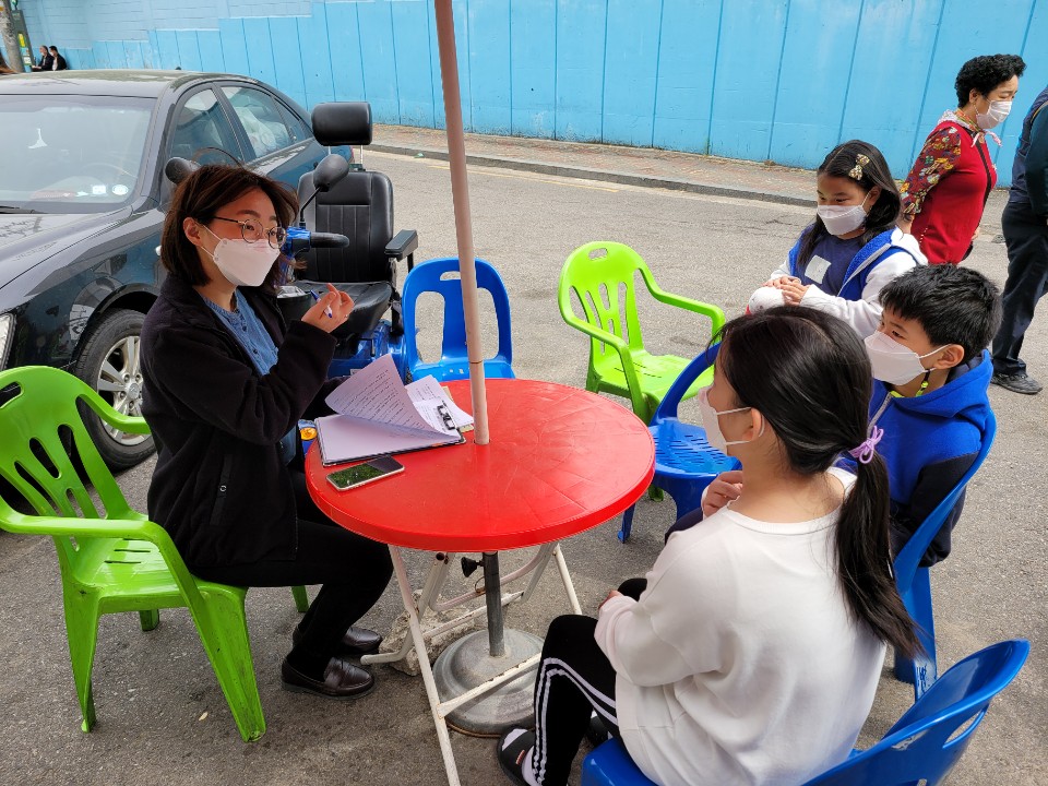 오늘도 다 함께 돌봄 센터 가는 아이, 혼자 사셔서 늘 나와 계시는 어르신, 하교하고 오는 아이들, 어머님들을 만났습니다.