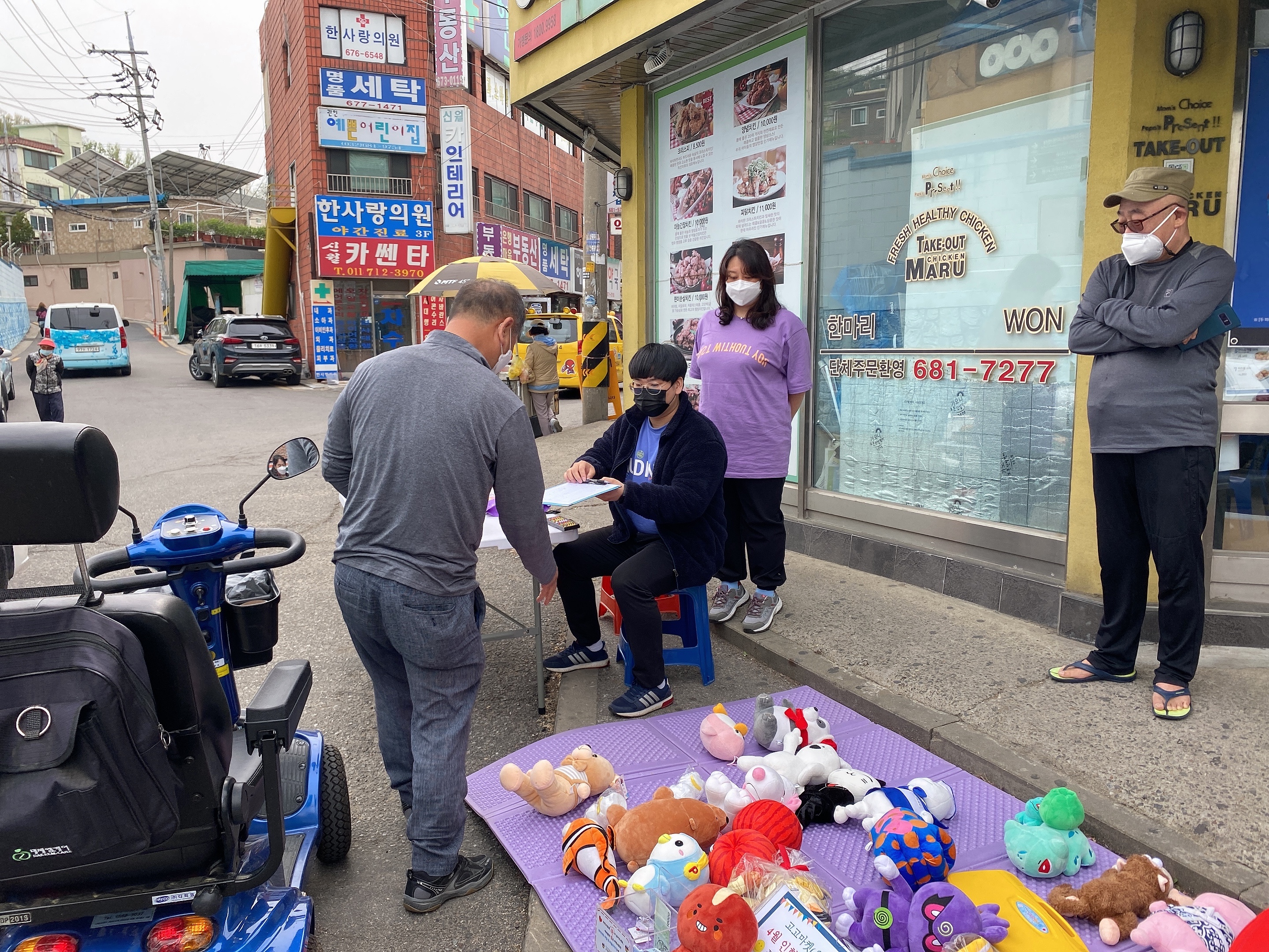 오늘도 치킨마루 앞에 자리를 잡았습니다.