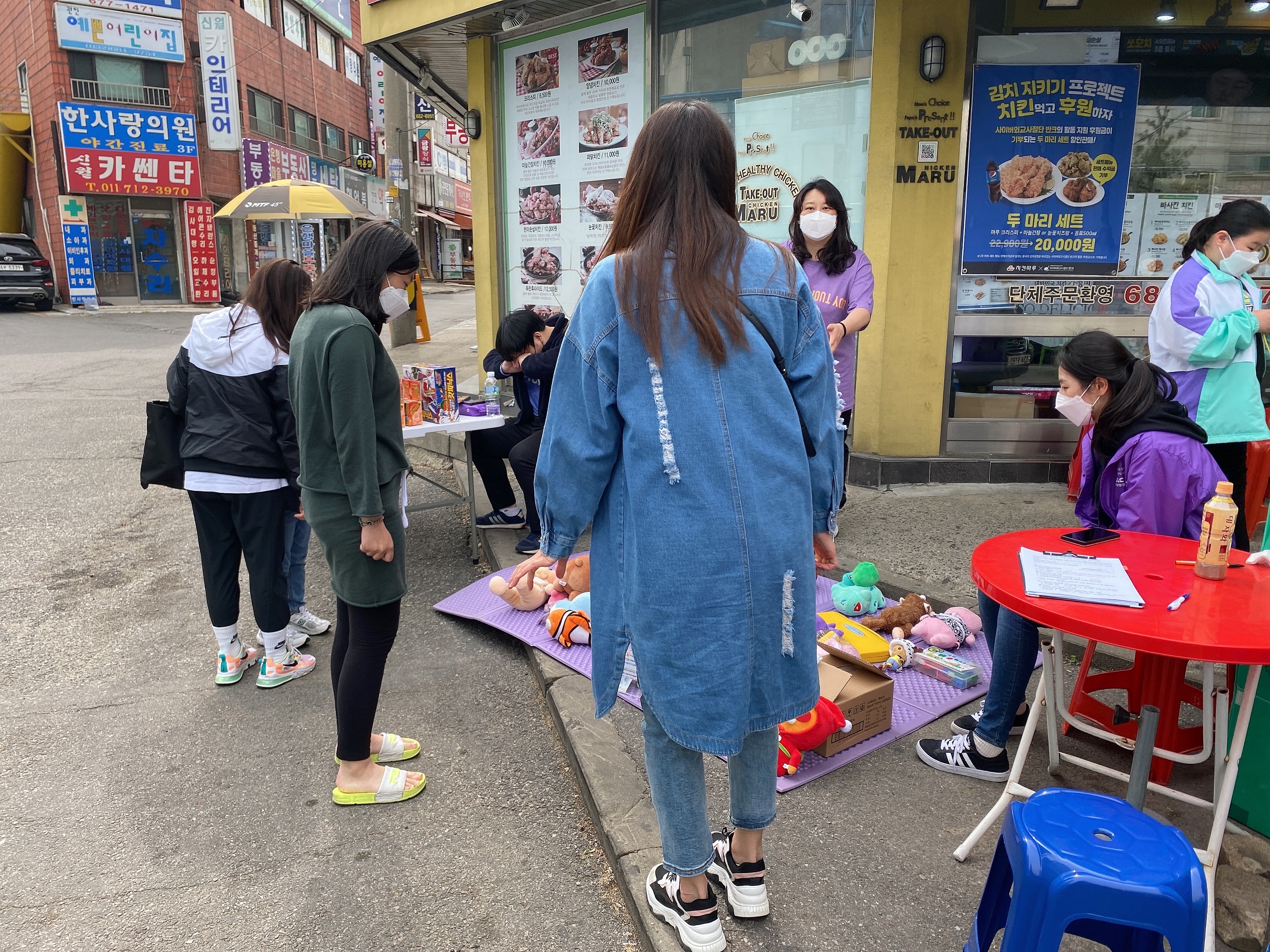 오늘도 치킨마루 앞에 자리를 잡았습니다.