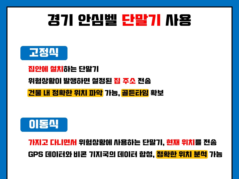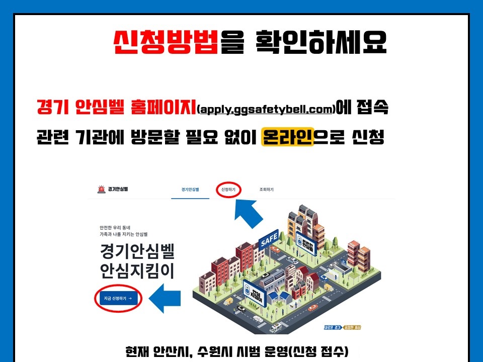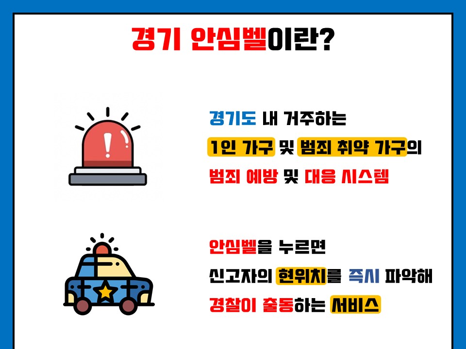 범죄 취약 가구를 대상으로 경기 안심벨을 운영중입니다.