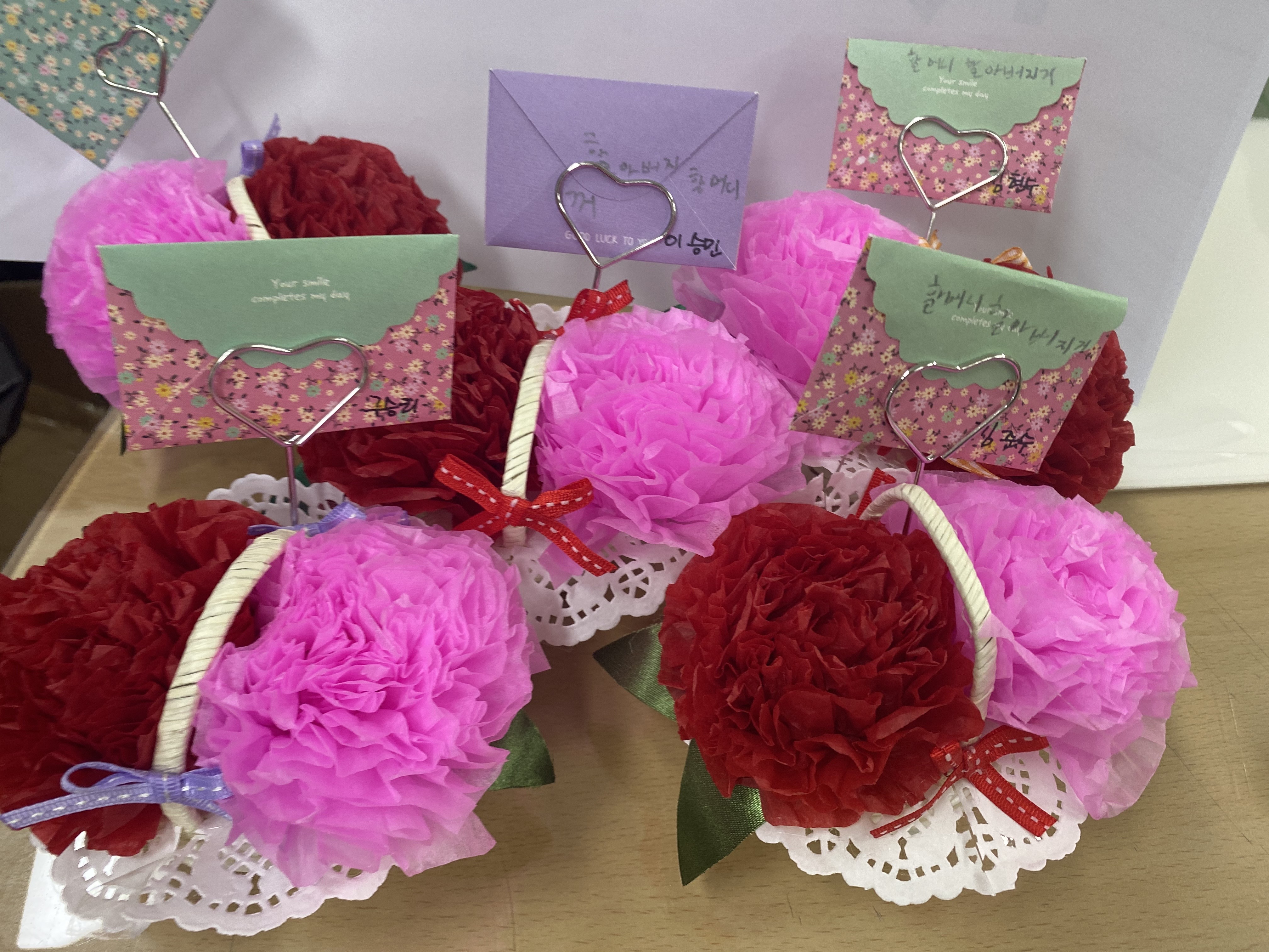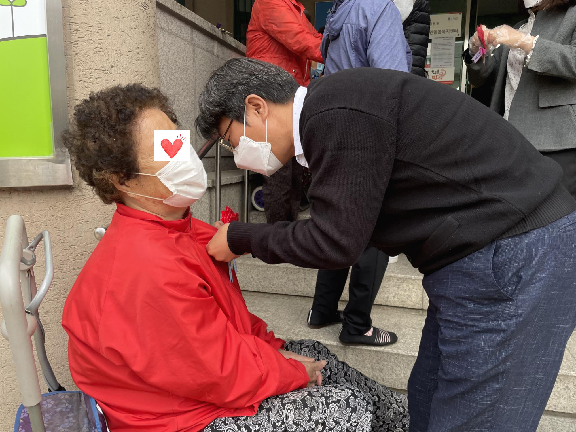 만들어주신 카네이션은 청수정(경로식당) 이용 어르신 약 300분에게 전달되었습니다-:)
