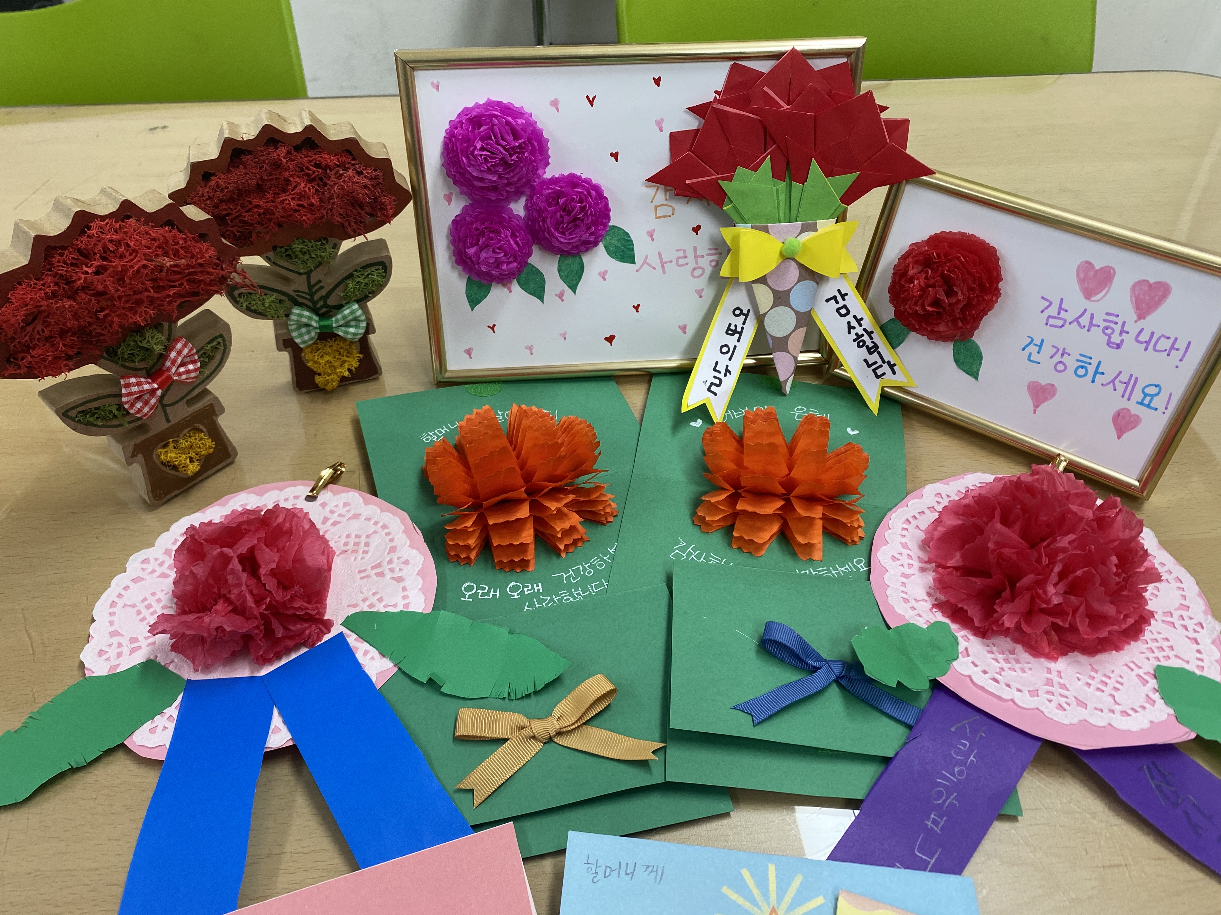 복지관 청수정(경로식당)에는 매일 240명의 어르신들이 오셔서 식사를 하시고, 거동이 불편하신 약 60분의 어르신은 반찬 배달 서비스를 이용하십니다. 어버이날, 지역에 계신 어르신들에게 감사한 마음을 전달하는 일에 아이들이 손수 만든 예쁜 카네이션이 더해지니 더욱 풍성한 어버이날이 될 것 같습니다.