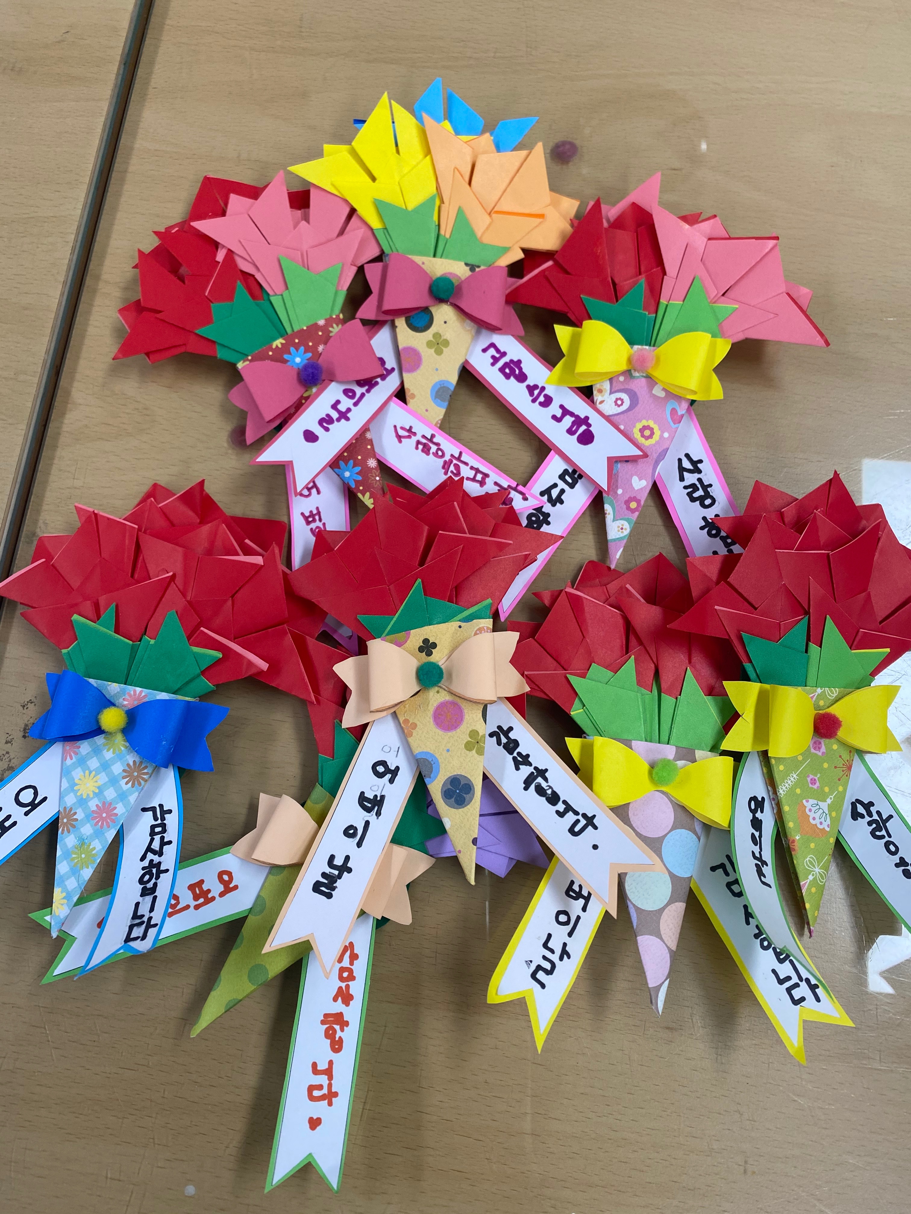 아이들의 손때와 특색이 묻어나는 너무 예쁜 카네이션들! 거기에 아이들이 직접 쓴 손편지까지...♥ 보기만 해도 흐뭇한, 아이들의 예쁜 마음이 고스란히 드러나는 작품이었습니다.