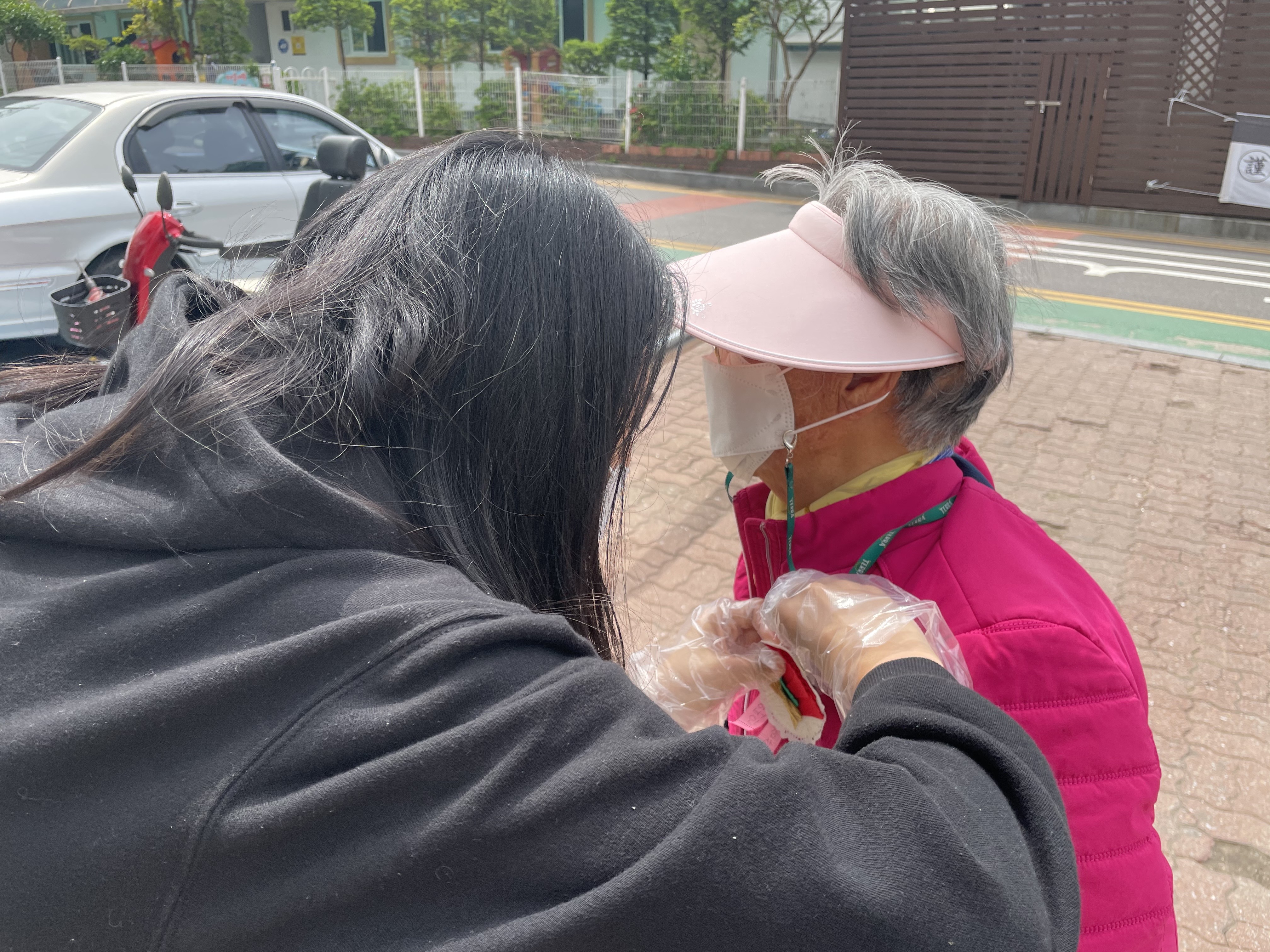감사한 마음을 가득 담아 한분 한분 어르신들께 달아드리며 인사드렸습니다.