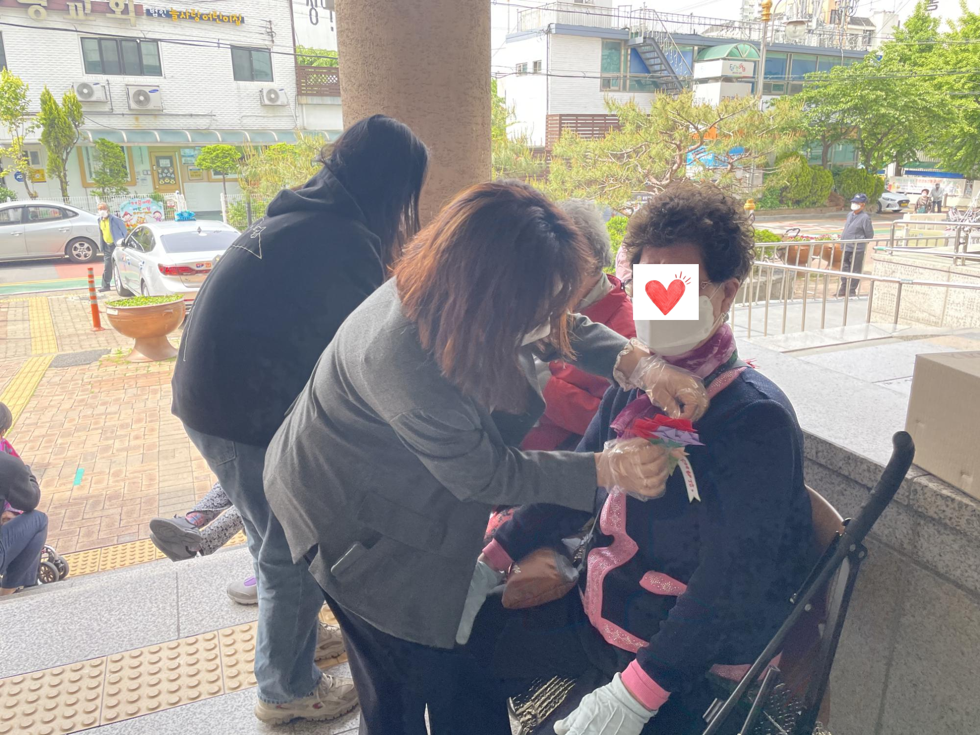 만들어주신 카네이션은 청수정(경로식당) 이용 어르신 약 300분에게 전달되었습니다-:)