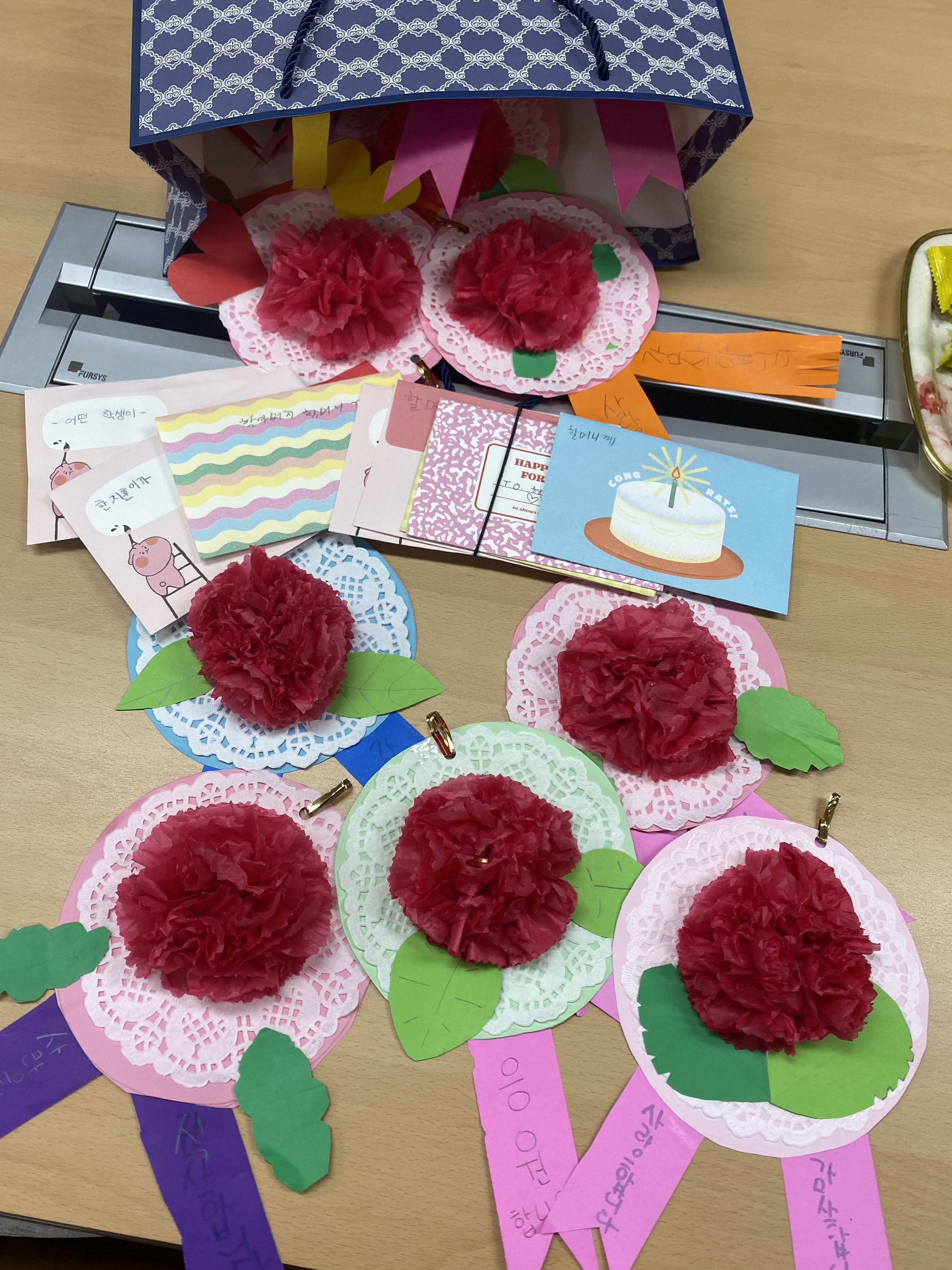 아이들의 손때와 특색이 묻어나는 너무 예쁜 카네이션들! 거기에 아이들이 직접 쓴 손편지까지...♥ 보기만 해도 흐뭇한, 아이들의 예쁜 마음이 고스란히 드러나는 작품이었습니다.