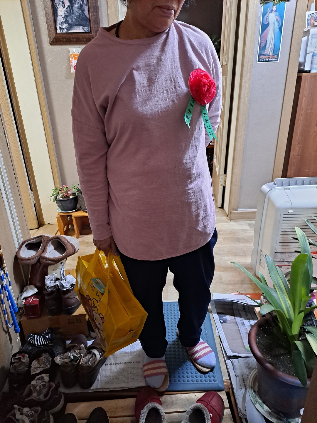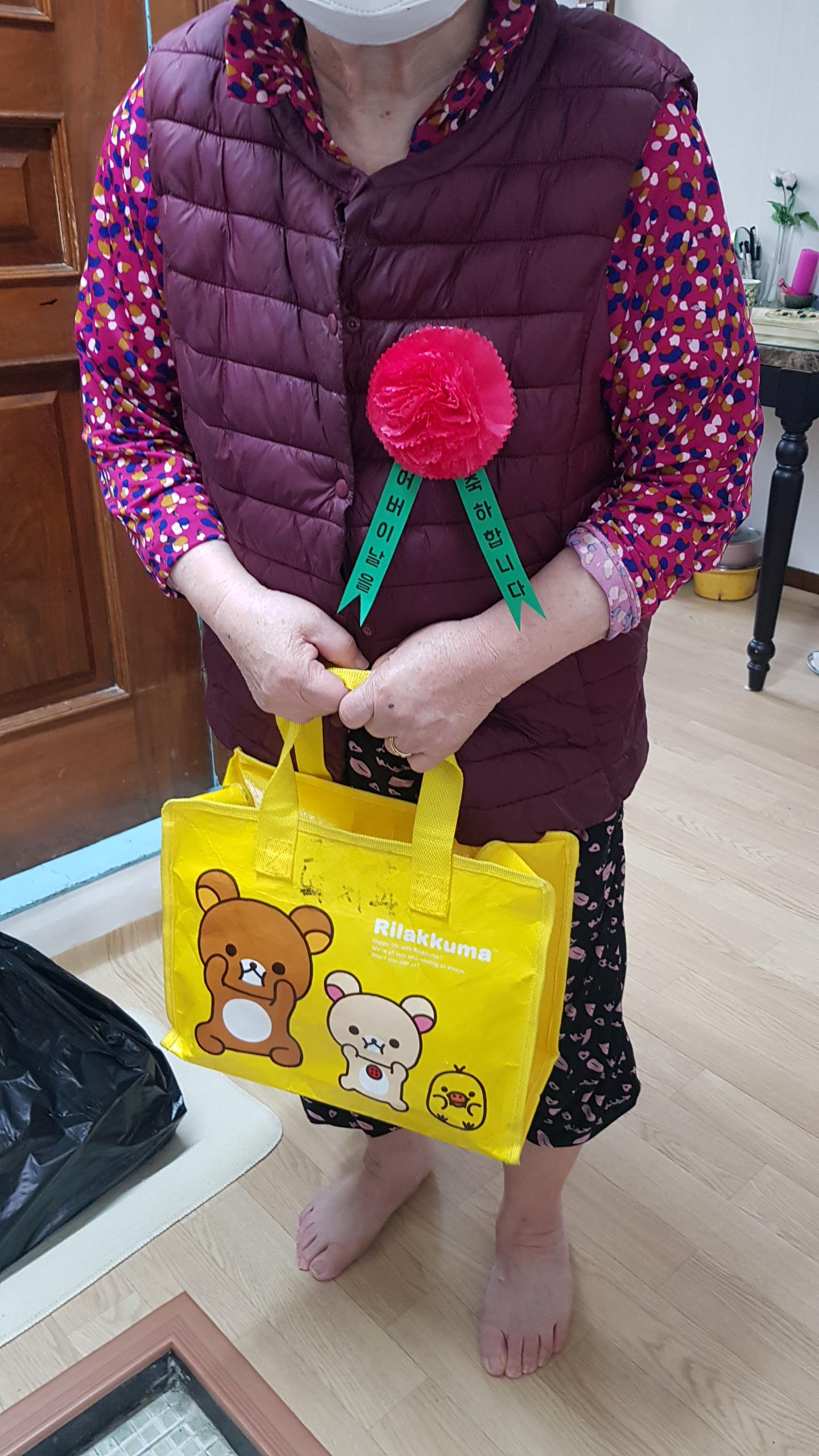 고강1동 '배달의돌봄' 활동가들은 직접 어르신들께 카네이션을 달아주었습니다.