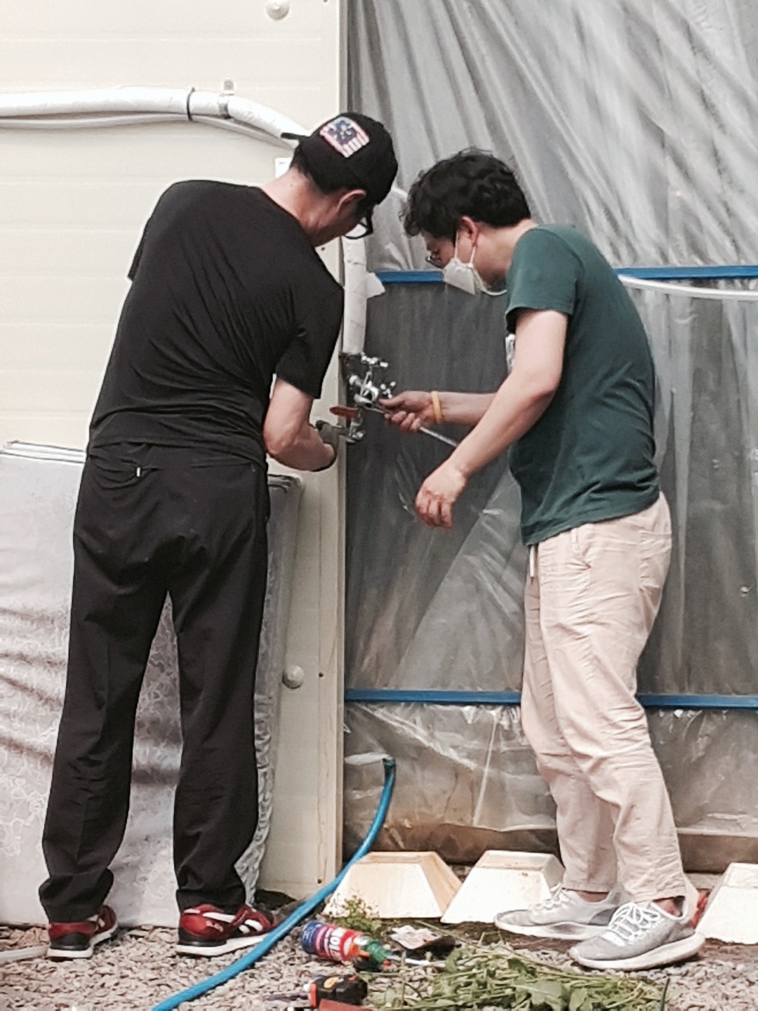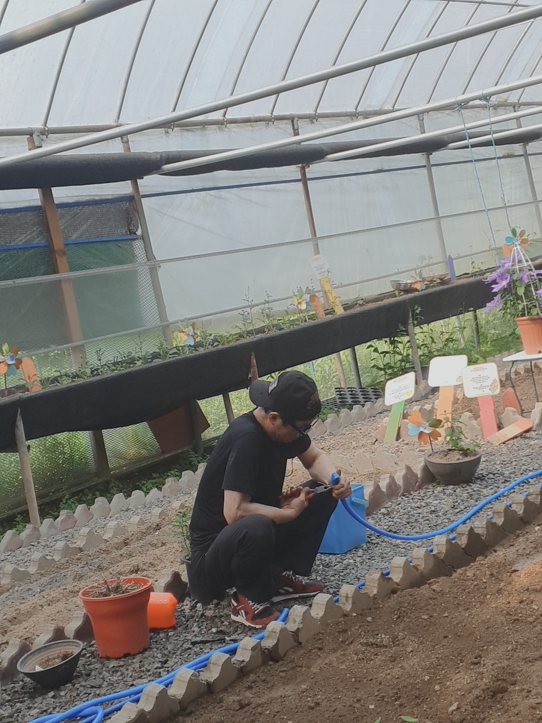 시원하게 작동하는 스프링클러가 고된 노동의 땀을 식혀주었습니다.