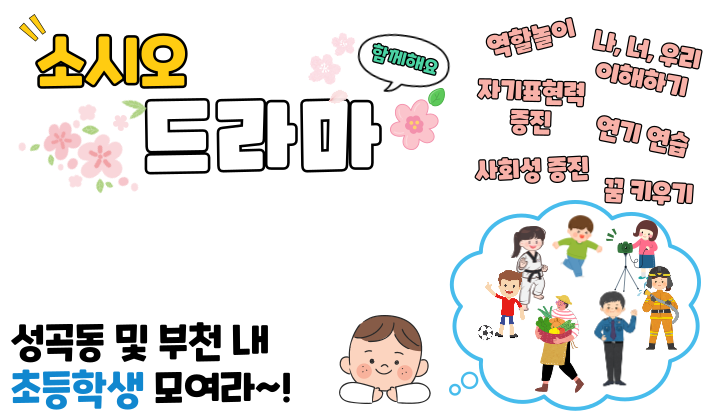 성곡동 및 부천 내 초등학생이라면 학년 제한 없이 모집하고 있으니 마을교육공동체(https://village.goe.go.kr/) 홈페이지에서 신청하세요♥