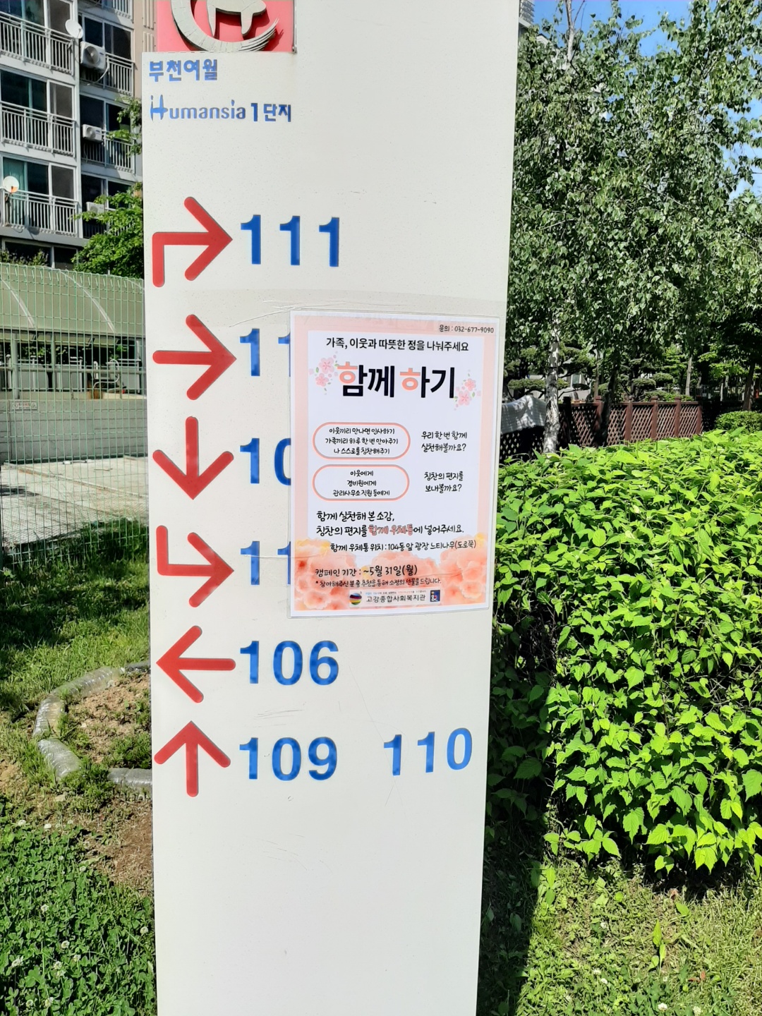여월휴먼시아 1단지에서는 104동 앞 광장에 우체통이 놓이고, 2단지에는 문고실 앞 가랜드 쪽에 우체통이 걸렸습니다.