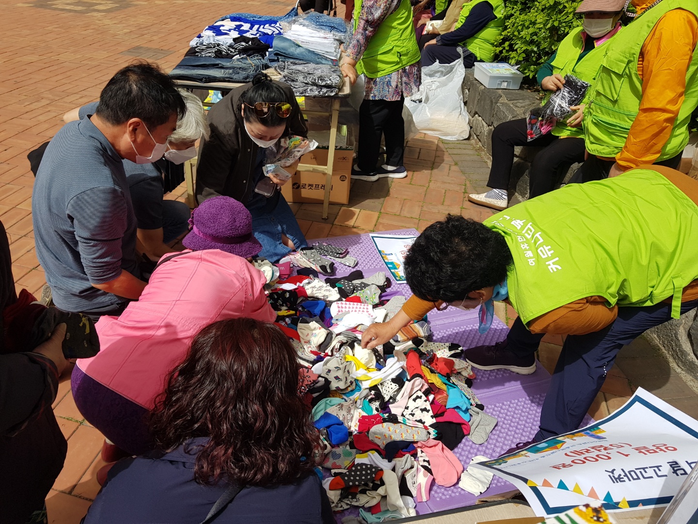 (각 부스 체험을 한 후 스티커를 모아오면 접수대에서 주민들을 위한 물티슈, 과자세트를 선물로 증정했습니다.)