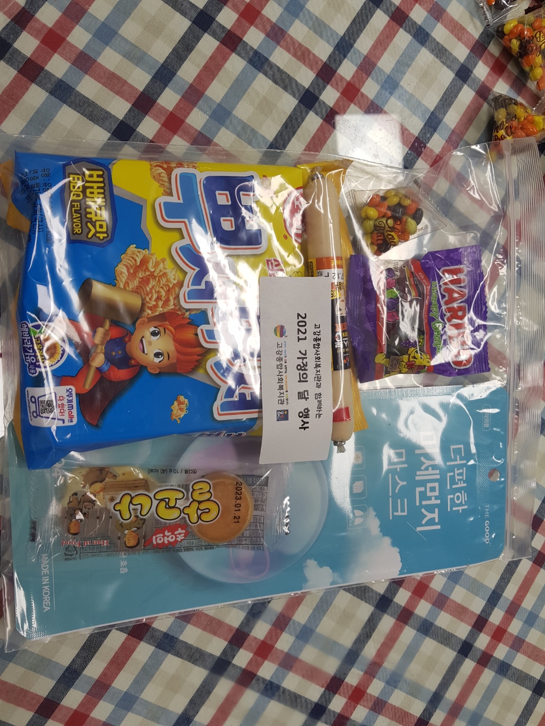 복지관에서는 당일 행사에 참여하시는 주민들을 위한 과자를 포장하여 나누기로 했습니다.