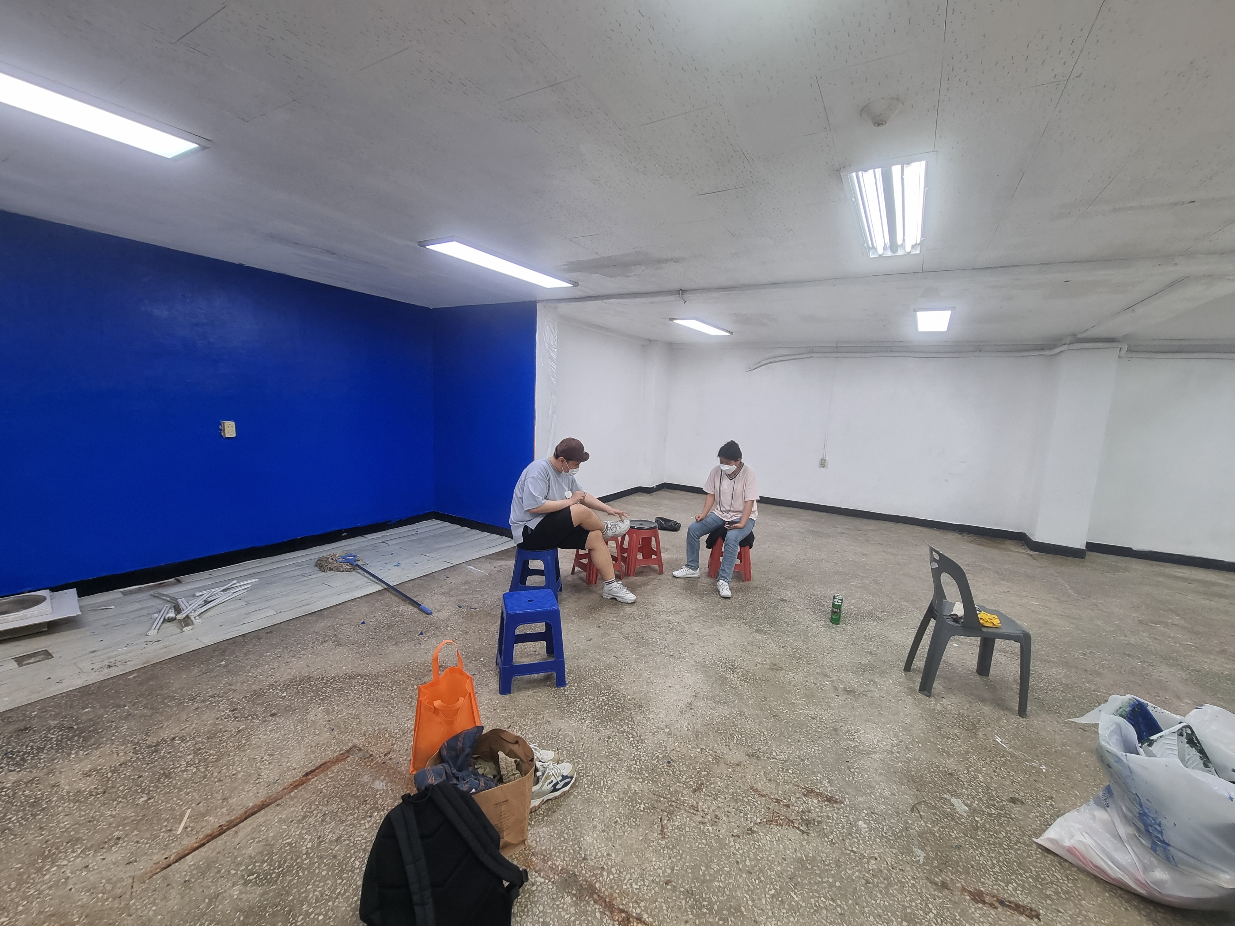 아무것도 없던 텅 빈 공간을 꾸미기 위해 페인트칠을 합니다.