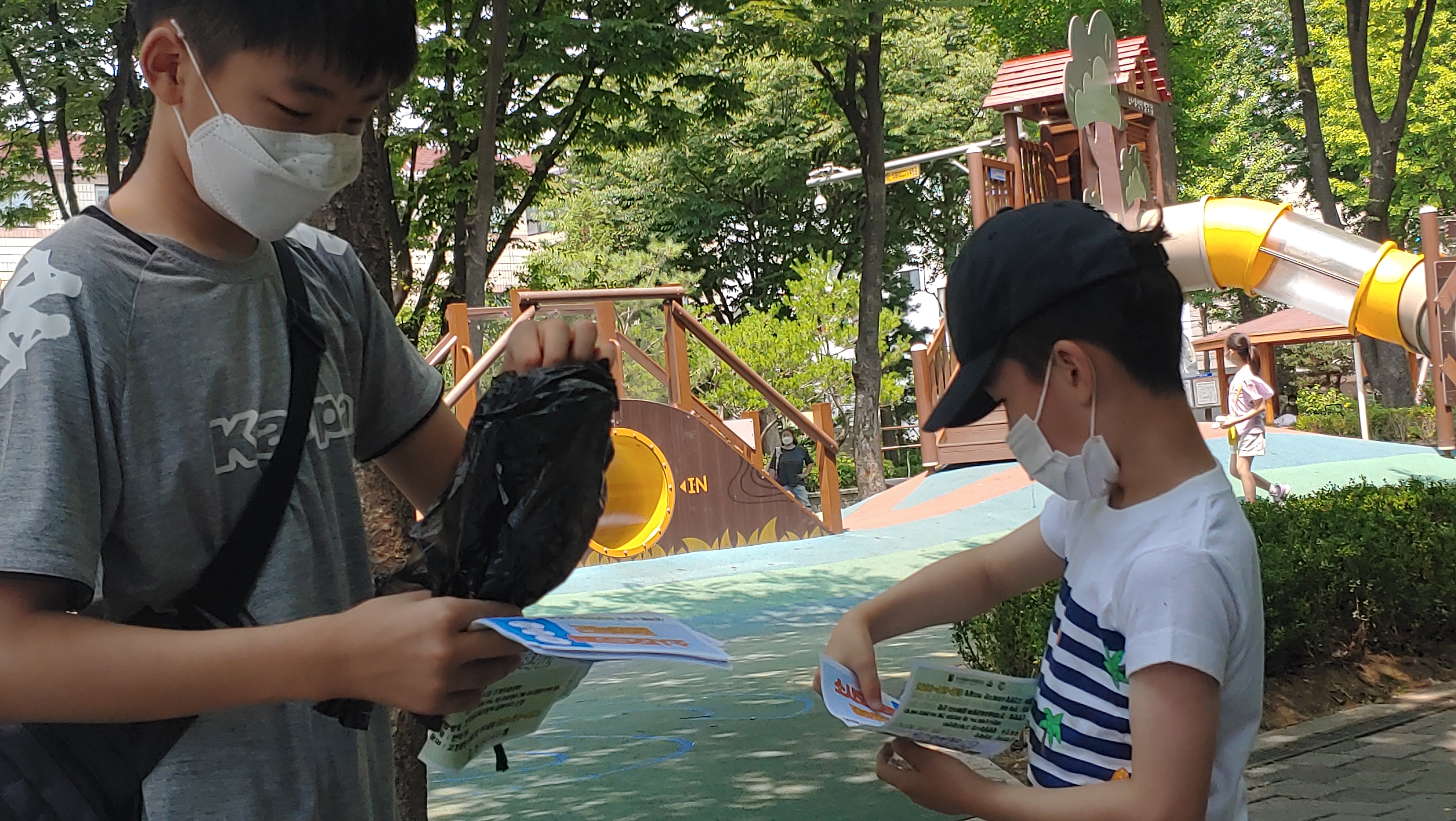 그것뿐만이 아닙니다. 홍보지를 가지고 돌아다니며 공원에 있는 아이들과 어르신들까지 대신 홍보를 진행해줍니다.