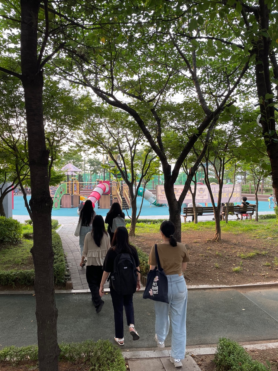 이를 증명하듯 이른 오전부터 늦은 저녁까지 공원이 비어있는 모습을 못했습니다. 낮에는 어르신들이 벤치에 둘러앉아 담소를 나누시고, 학생들이 하교하는 시간에는 더운 날씨에도 아랑곳하지 않고 뛰어노는 아이들의 웃음소리로 공원이 시끌시끌해집니다. 공원이 마을에서 중요한 역할을 담당하고 있다는 것을 안 이후 새로운 호기심이 발동했습니다.