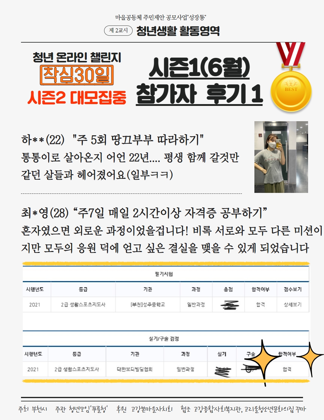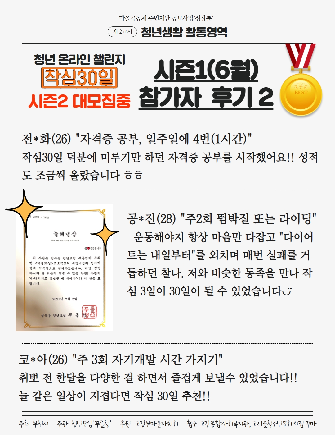 성곡동 청년모임 '푸를청'이 기획하고 실행한! 청년 온라인 챌린지<작심 30일>