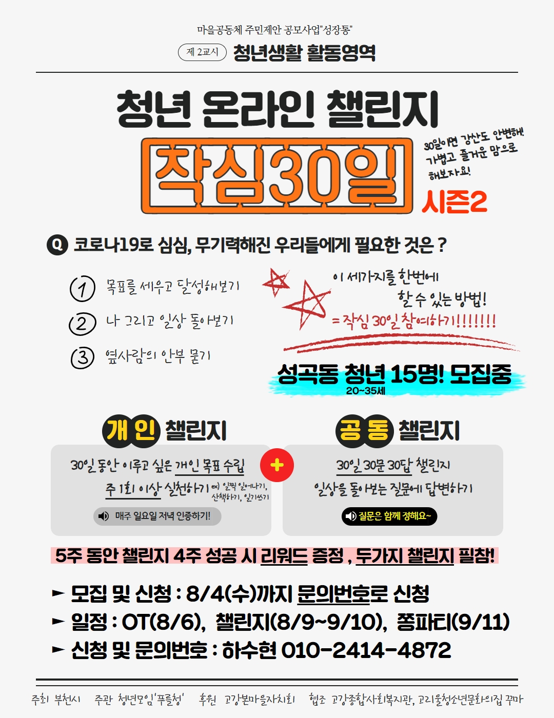 성곡동 청년모임 '푸를청'이 기획하고 실행한! 청년 온라인 챌린지<작심 30일>