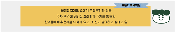 길에 쓰레기 버리지 않기와 같은 소소한 실천을 함께 해보는 건 어떨까요?